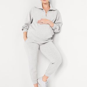 Maternity Bounce Fleece Half-Zip Pullover: Featuring Bounce Fleece. A smooth, cooling finish that feels good and looks chic everywhere you go.half-zip funnel neck, long drop-shoulder sleeves with pleated cuffs, on-seam pockets, easy pullover style, breathable, #826400