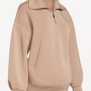Maternity Bounce Fleece Half-Zip Pullover: Featuring Bounce Fleece. A smooth, cooling finish that feels good and looks chic everywhere you go.half-zip funnel neck, long drop-shoulder sleeves with pleated cuffs, on-seam pockets, easy pullover style, breathable, #826400