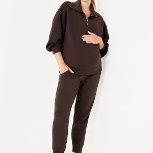 Maternity Bounce Fleece Rollover-Waist Jogger Sweatpants