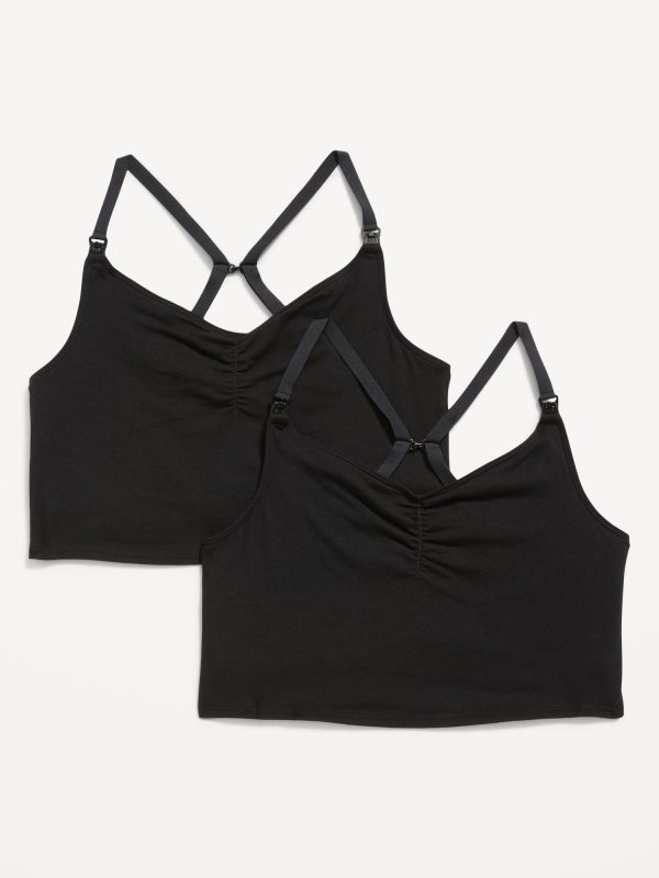 Maternity Brami Nursing Top 2-Pack: Pack includes 2 full-coverage nursing brami tops., Adjustible spaghetti straps, with quick-release clips for convenient nursing., V-neck, with gathering along front., Shaped cups, with drop-down functionality and soft-knit interior layer for convenient, discreet nursing., Cropped hem., Cotton-jersey, with comfortable stretch., #578903
