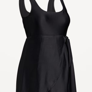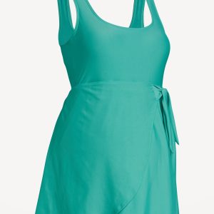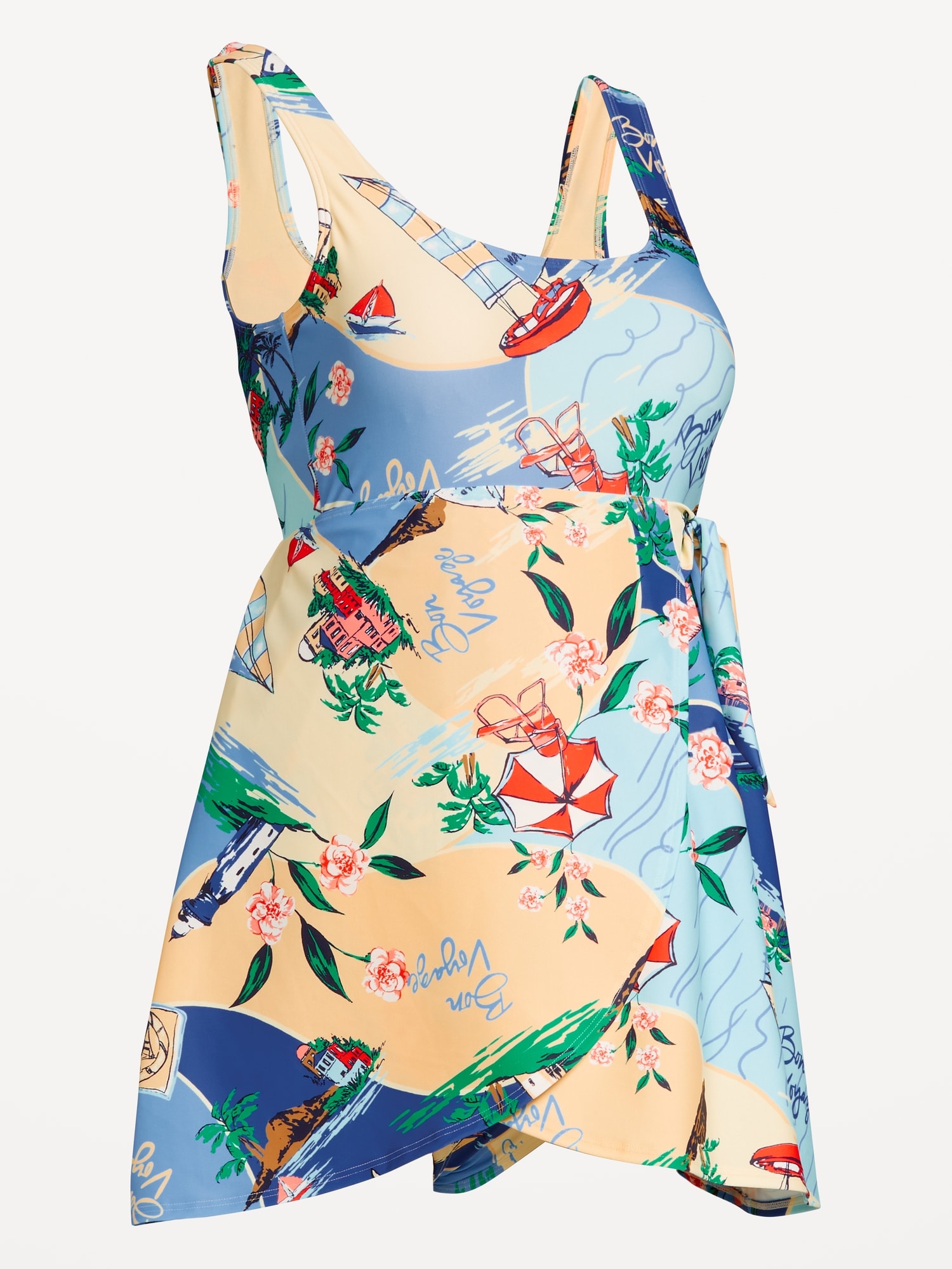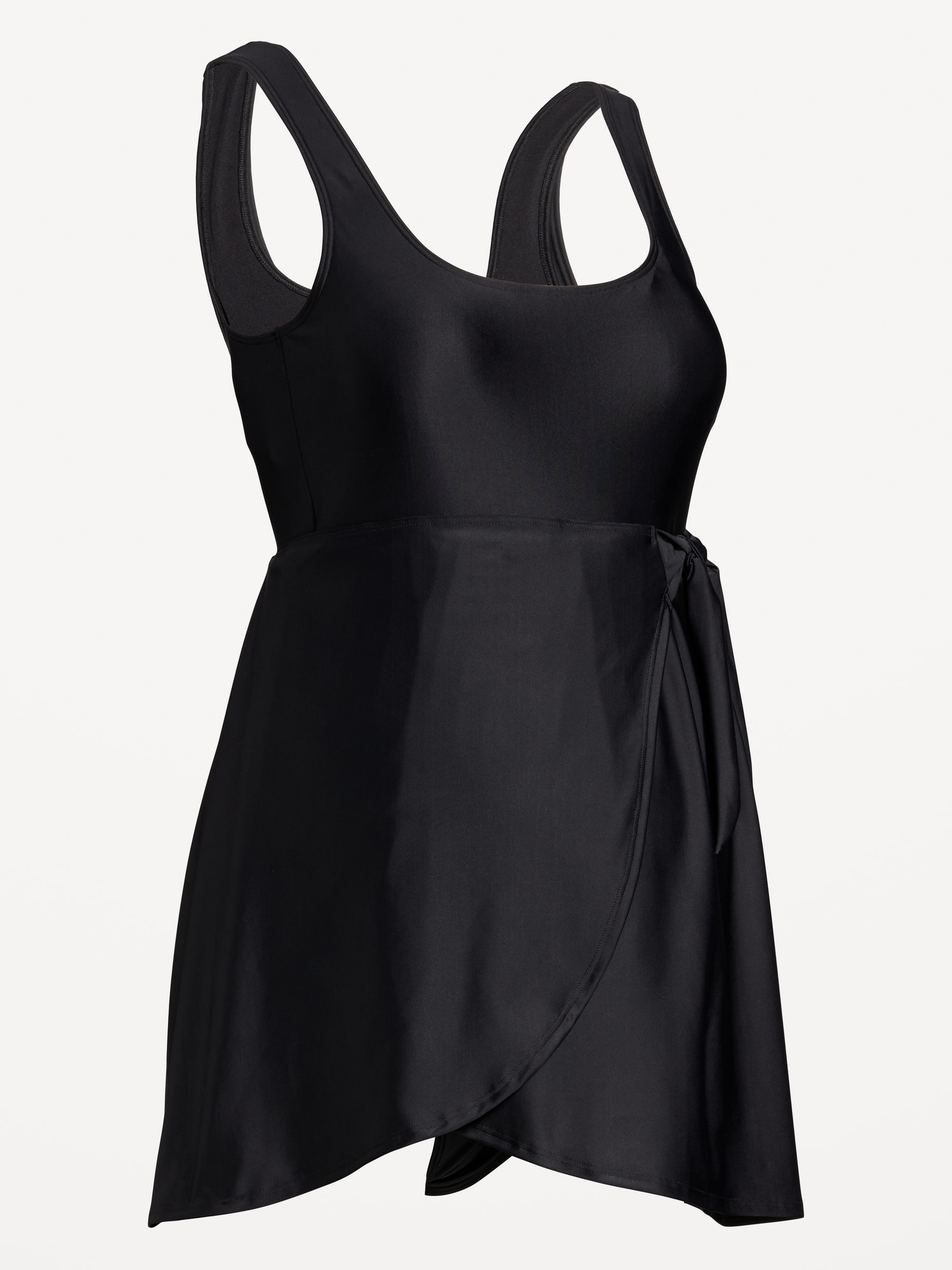 Maternity Classic Wrap Swim Dress: square neck, sleeveless, removable pads, built-in briefs, side-tie, #756110