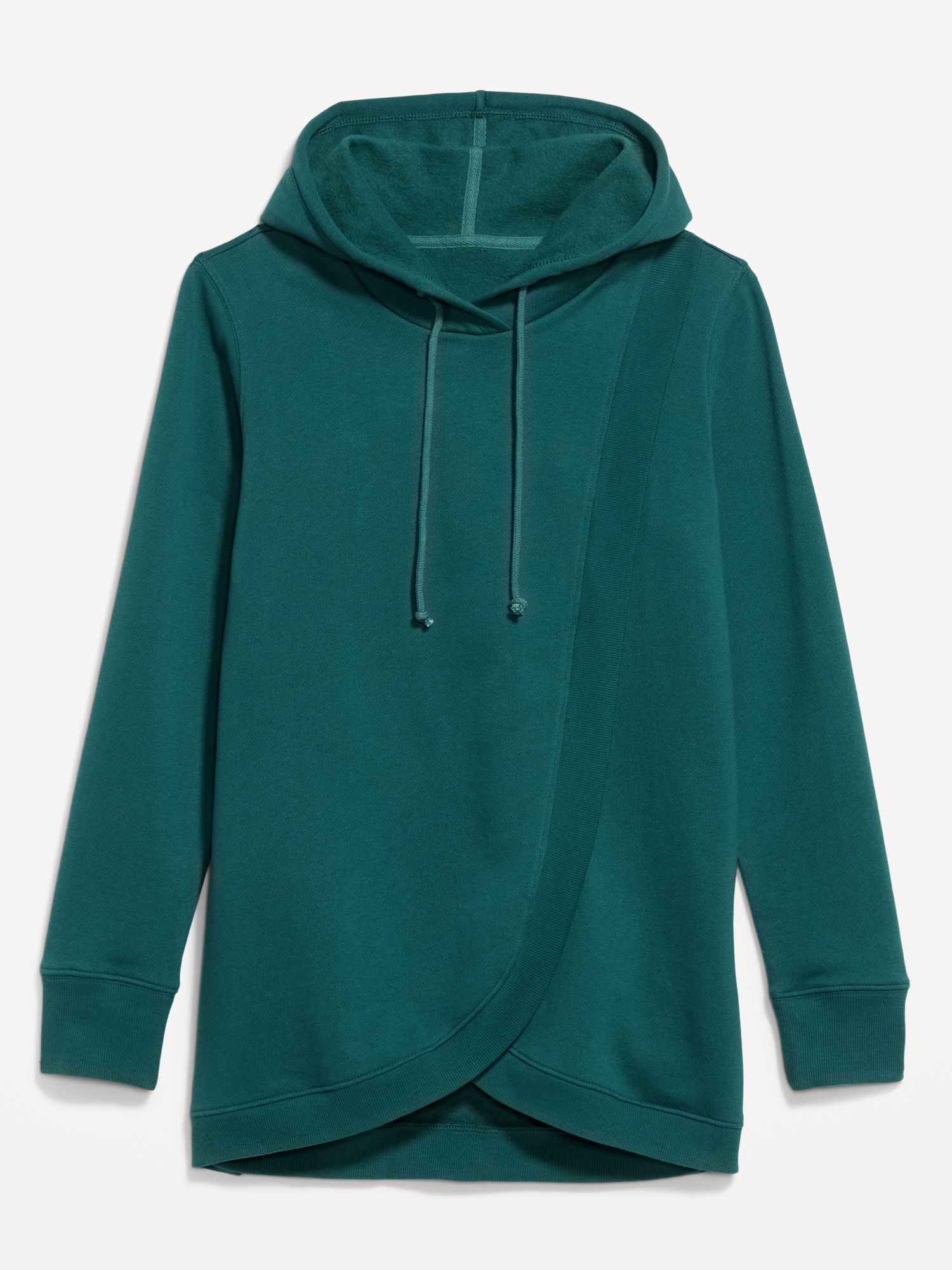 Maternity Cross-Front Nursing Pullover Hoodie: adjustable drawstring hood, long sleeves, rib-knit cuffs, cross front for convenient nursing access, rib-knit front and hem, pullover style, #578188