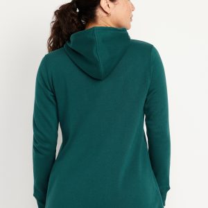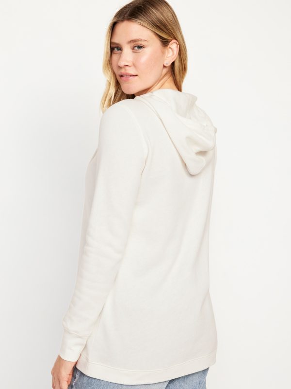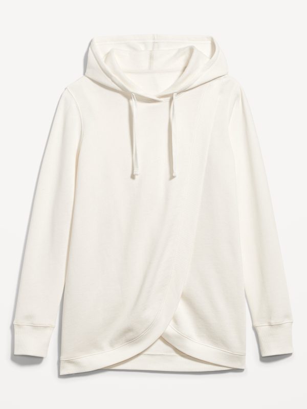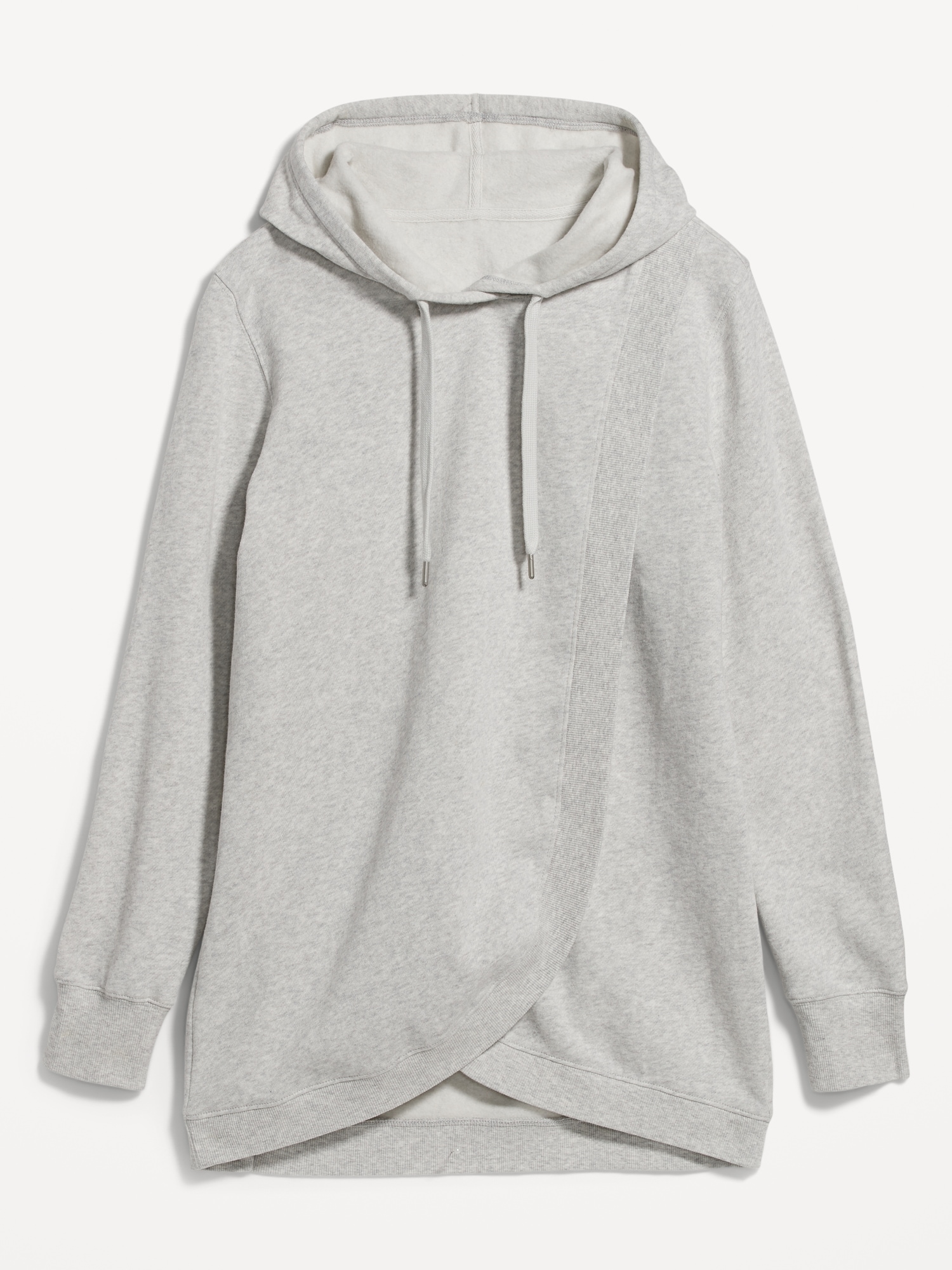 Maternity Cross-Front Nursing Pullover Hoodie: adjustable drawstring hood, long sleeves, rib-knit cuffs, cross front for convenient nursing access, rib-knit front and hem, pullover style, #578188