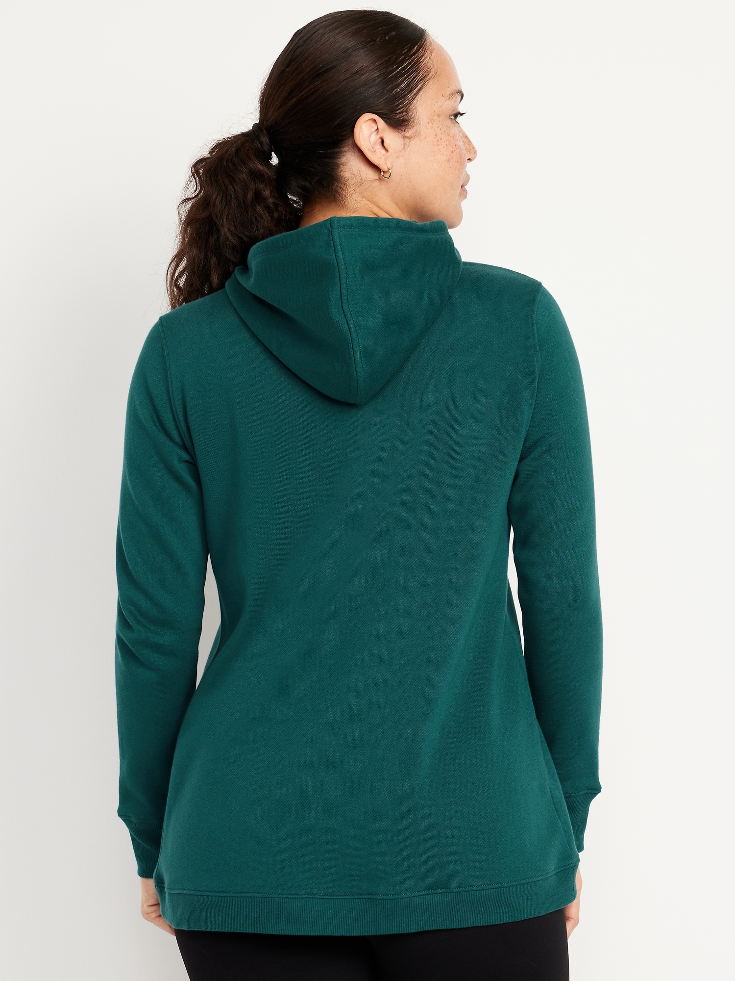 Maternity Cross-Front Nursing Pullover Hoodie: adjustable drawstring hood, long sleeves, rib-knit cuffs, cross front for convenient nursing access, rib-knit front and hem, pullover style, #578188