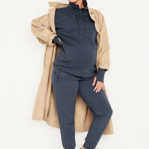 Maternity Dynamic Fleece Half Zip: Featuring Dynamic Fleece. Soft, smooth fleece plus made-to-move stretch.drawstring funnel neck, long sleeves, thumbhole cuffs, half-zip front, zip pockets, rib-knit trim, pullover style, #596853