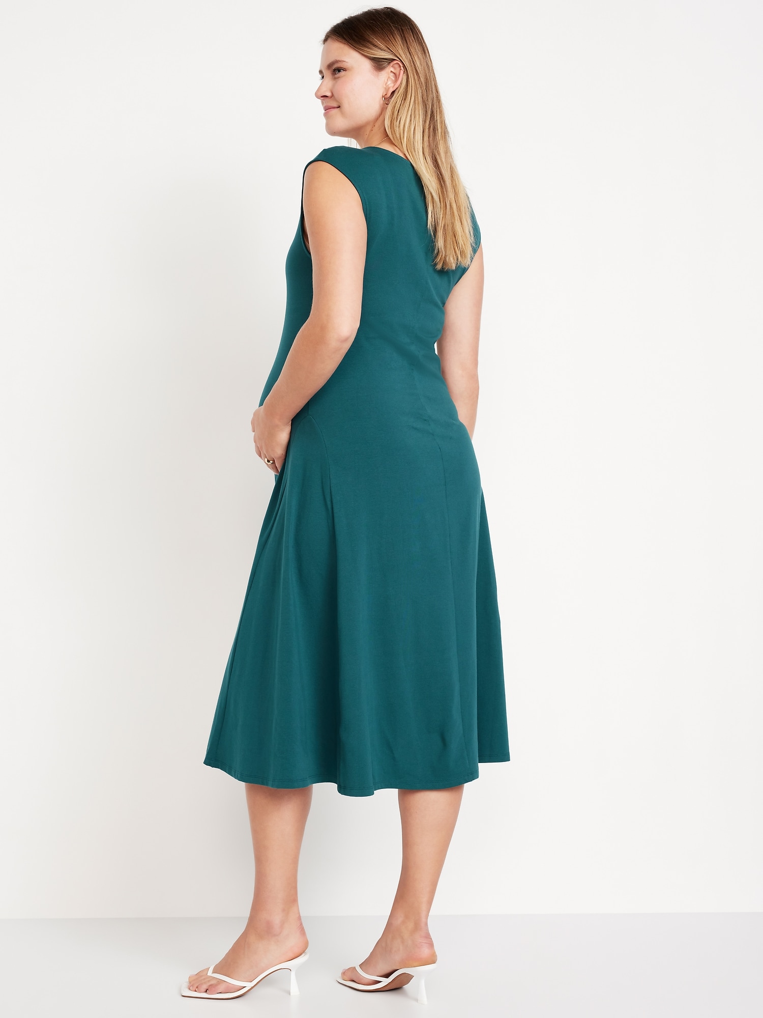 Maternity Fit & Flare Midi Dress: perfect for baby shower, scoop neck, sleeveless, #719636