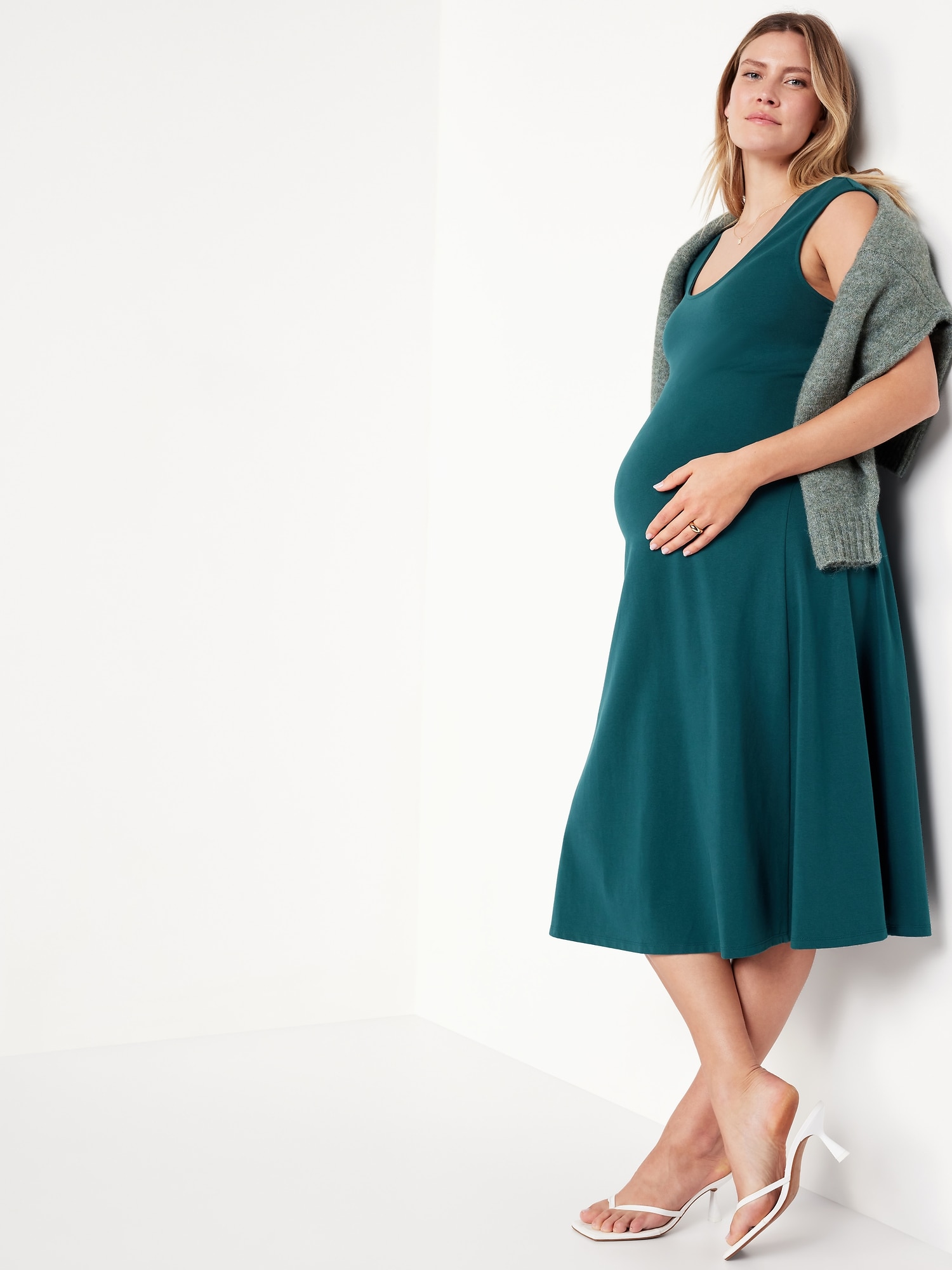 Maternity Fit & Flare Midi Dress: perfect for baby shower, scoop neck, sleeveless, #719636