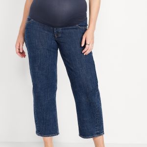 Maternity Full-Panel Baggy Barrel Jeans: The effortless curved shape that’s so hot right now.full panel waistband, faux fly, barrel leg, scoop pockets, back patch pockets, #826440