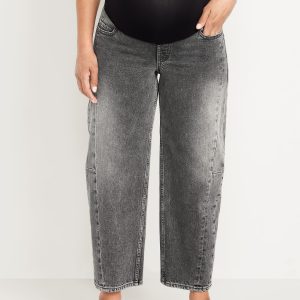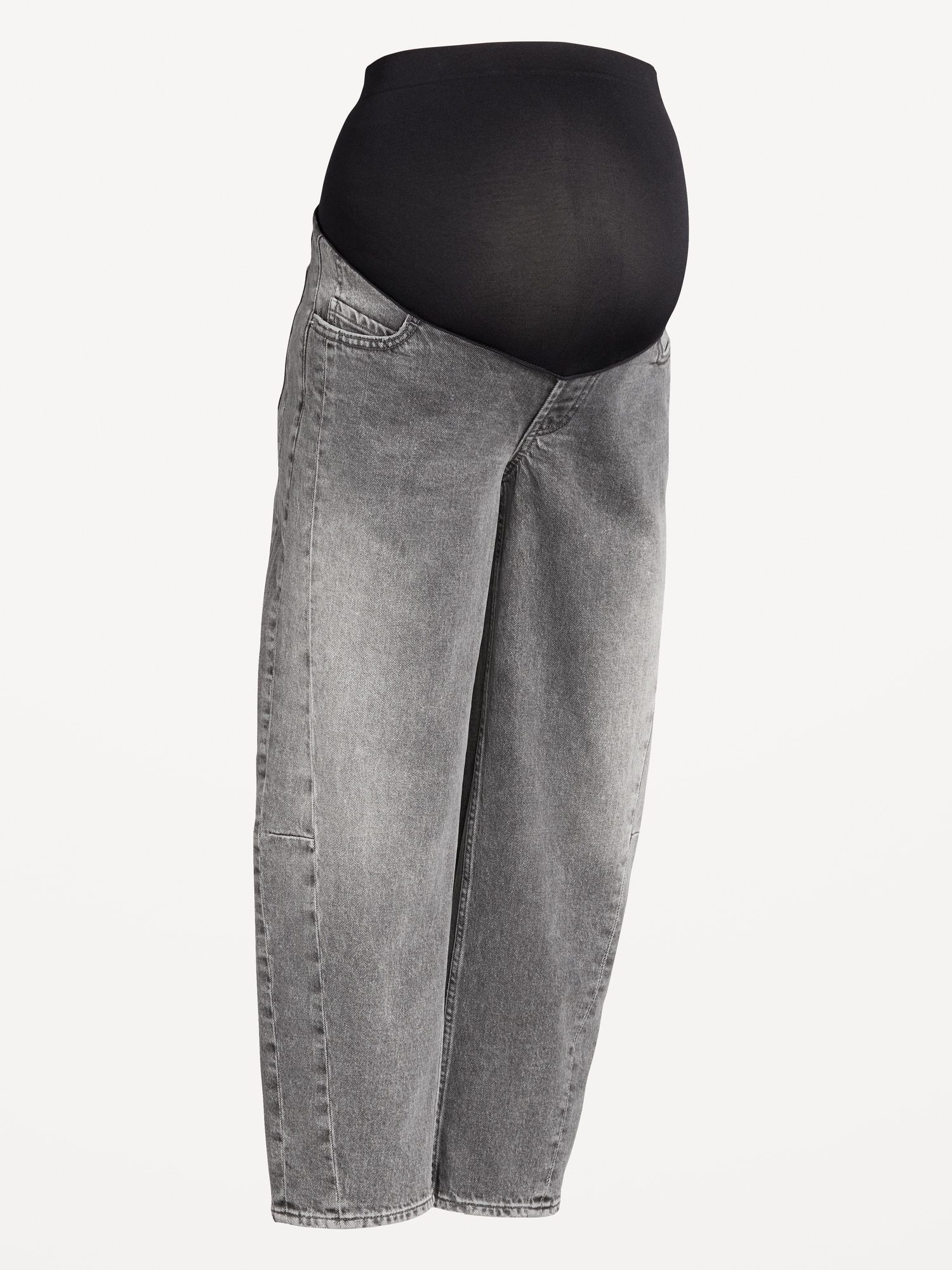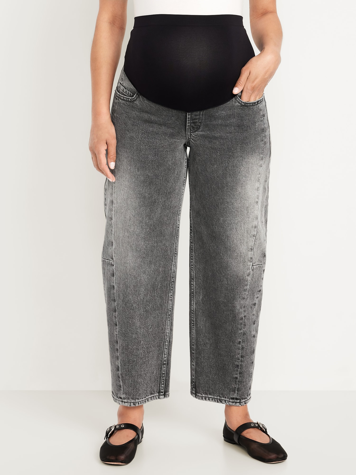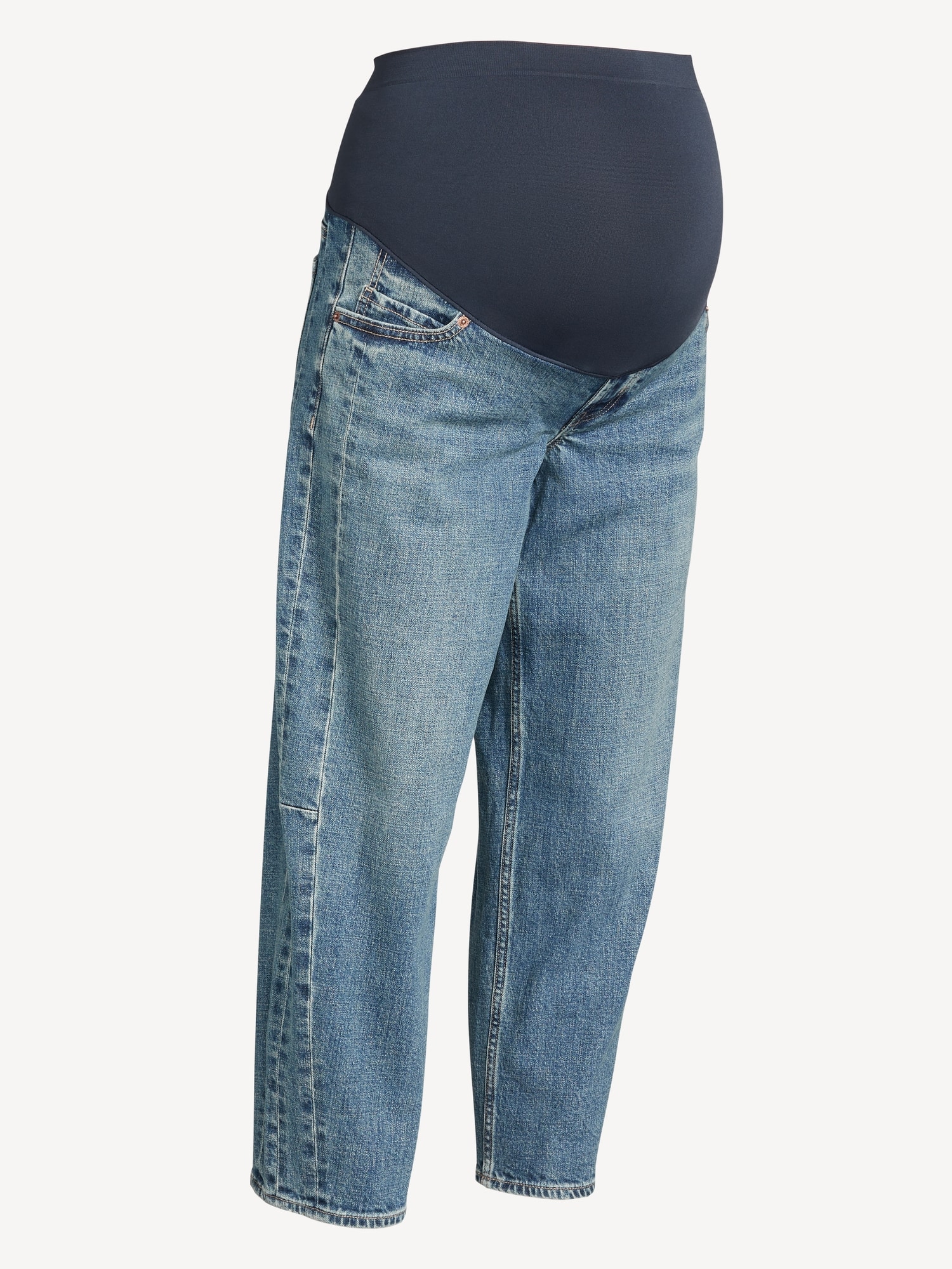 Maternity Full Panel Barrel Ankle Jeans: The effortless curved shape that’s so hot right now.full panel waistband, faux fly, barrel leg, scoop pockets, back patch pockets, #826440