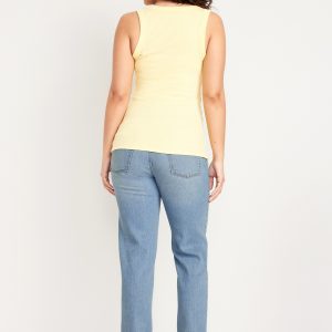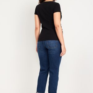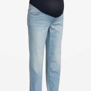 Maternity Full-Panel Boyfriend Jeans: full panel waistband, faux fly, front scoop pockets, back patch pockets, straight leg, #719611