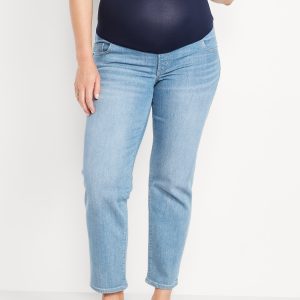 Maternity Full-Panel OG Straight Jeans: full-panel waistband stretches over belly, faux fly, scoop pockets at front, patch pockets at back, #871067