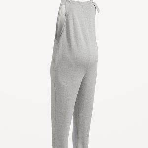 Maternity Knotted-Strap Fleece Overalls: perfect for baby shower, square neck, knotted shoulder straps, on-seam pockets, rolled cuffs, #758300