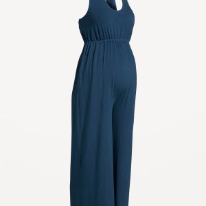 Maternity Knotted-Strap Fleece Overalls: perfect for baby shower, square neck, knotted shoulder straps, on-seam pockets, rolled cuffs, #758300