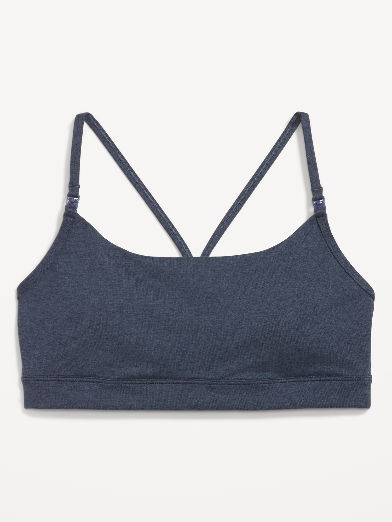 Maternity Light Support CloudComfy Sports Bra: Lightly textured and soft as a literal cloud.scoop neck, racerback, removable pads, go-dry wicks moisture, elastic hem, #775067