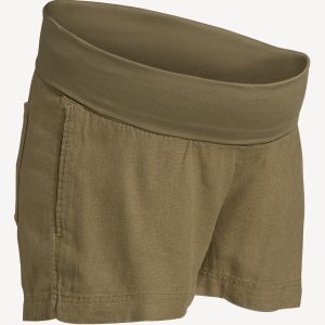 Maternity Linen-Blend Pull-On Shorts — 3.5-inch inseam: foldover jersey waistband, on-seam side pockets, back patch pockets, easy pull-on style, #746574