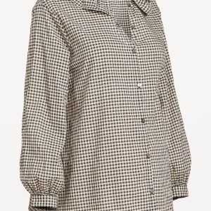 Maternity Long Sleeve Button-Down Ruffle Shirt