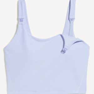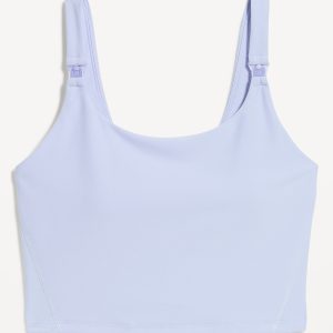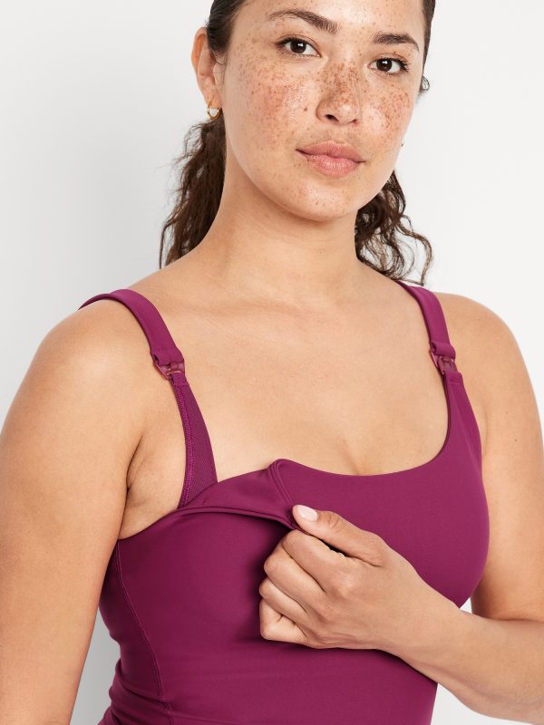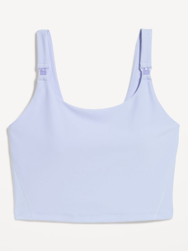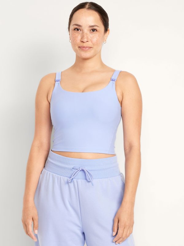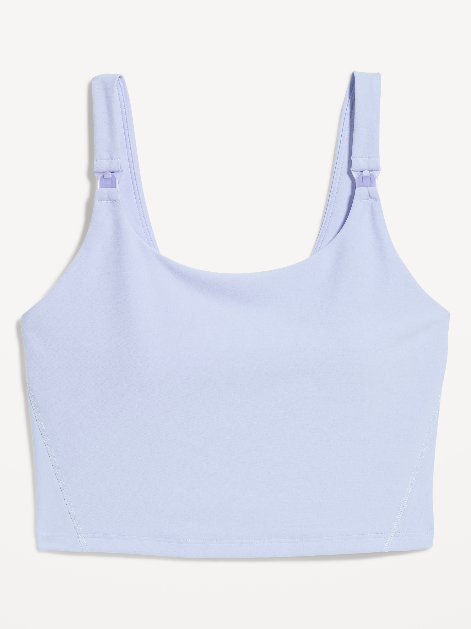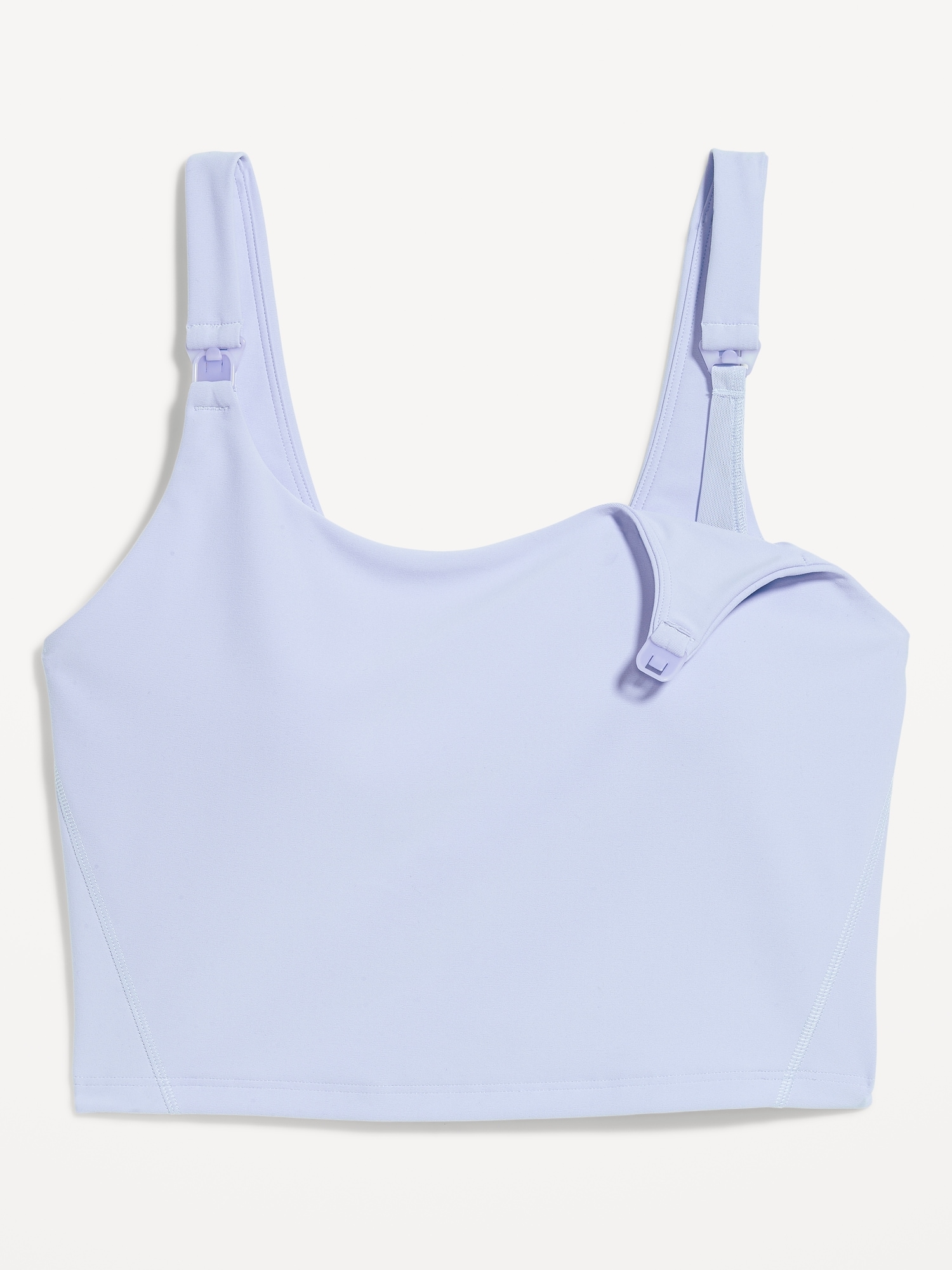 Maternity PowerSoft Nursing Sports Bra: Featuring PowerSoft. A stretchy, peachy-smooth fabric with light compression.scoop neck, adjustable shoulder straps, detachable clips for convenient nursing, cross-cross straps at back, removable pads, go-dry wicks moisture, #434639
