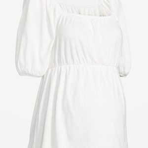 Maternity Puff Sleeve Top: square neck, empire waist, elastic cuffs, flared hem, #771745