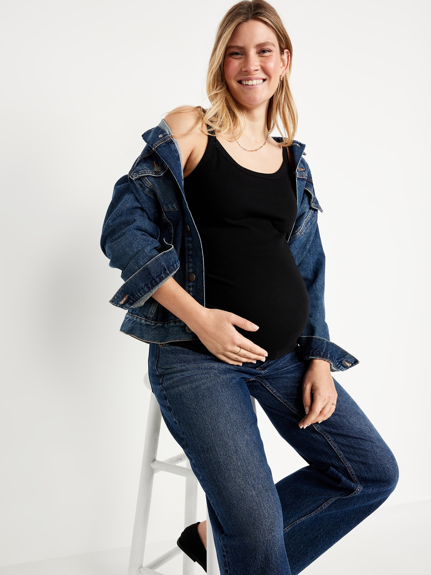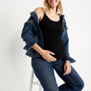 Maternity Ribbed Cami Tank Top: scoop neck, shirred sides for a flexible fit, #717036