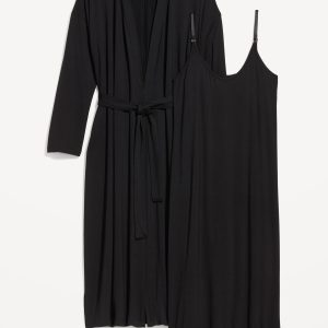 Maternity Robe and Nursing Nightgown Set: includes bathrobe and matching cami nightgown, robe has long sleeves, removeable tie belt and on-seam pockets, nightgown has detachable clips at spaghetti straps, built-in shelf bra for convenient nursing, #465767
