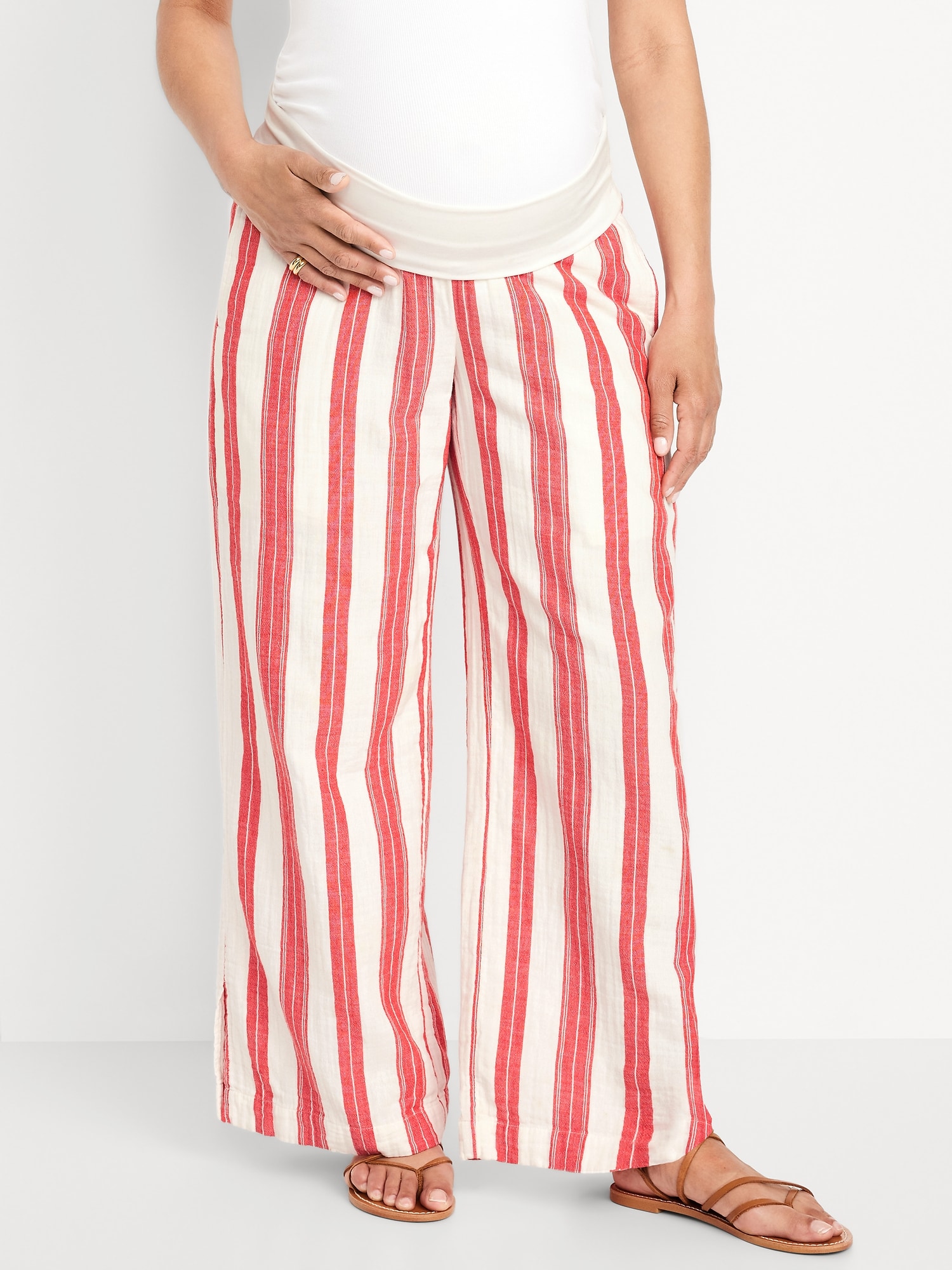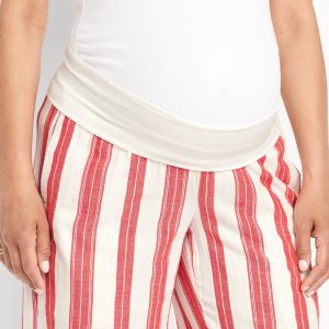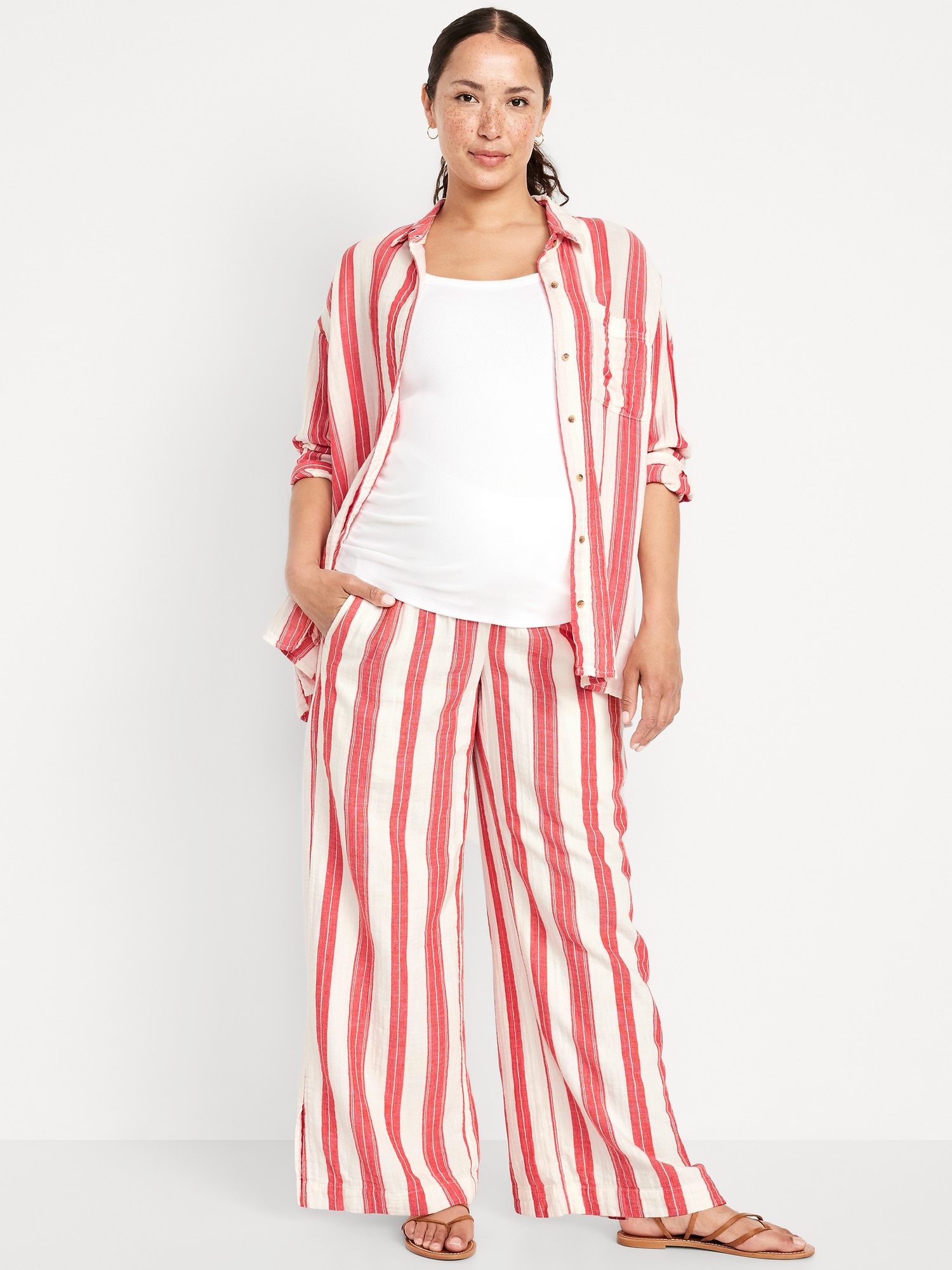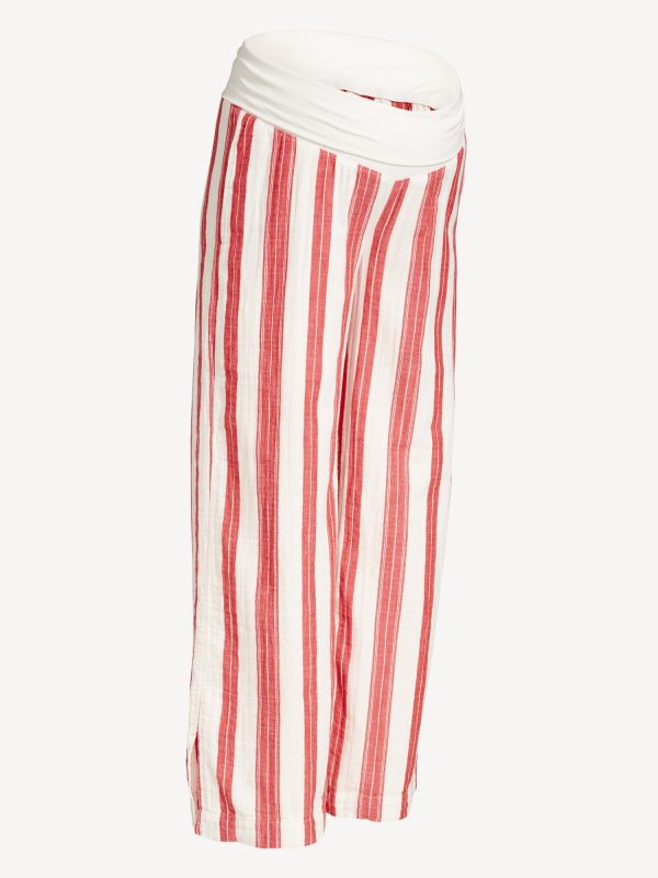 Maternity Rollover Waist Crinkle Gauze Super Wide-Leg Pants: A light, rippled fabric that’s begging to be beachside.rollover waist, pull-on style, on-seam hip pockets, wide leg, #771711