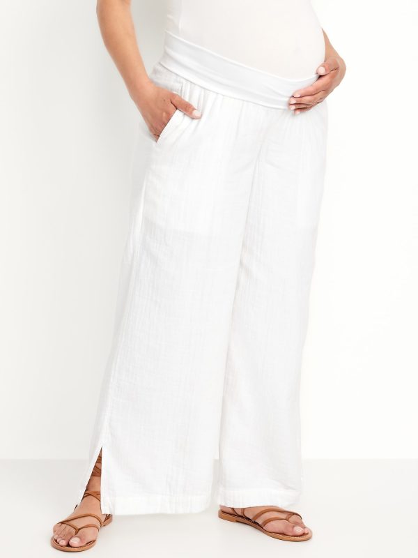 Maternity Rollover Waist Crinkle Gauze Super Wide-Leg Pants