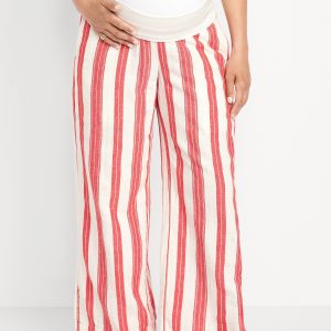 Maternity Rollover Waist Crinkle Gauze Wide-Leg Pants