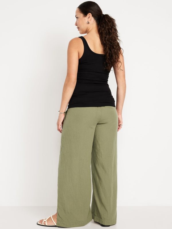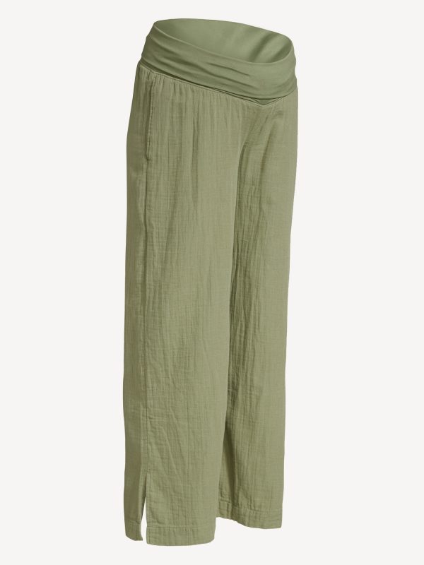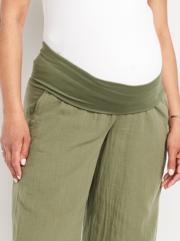 Maternity Rollover Waist Crinkle Gauze Wide-Leg Pants