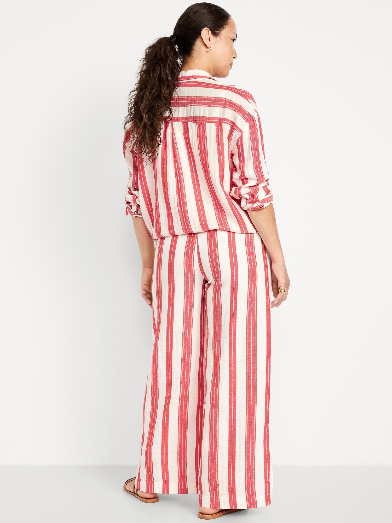 Maternity Rollover Waist Crinkle Gauze Wide-Leg Pants