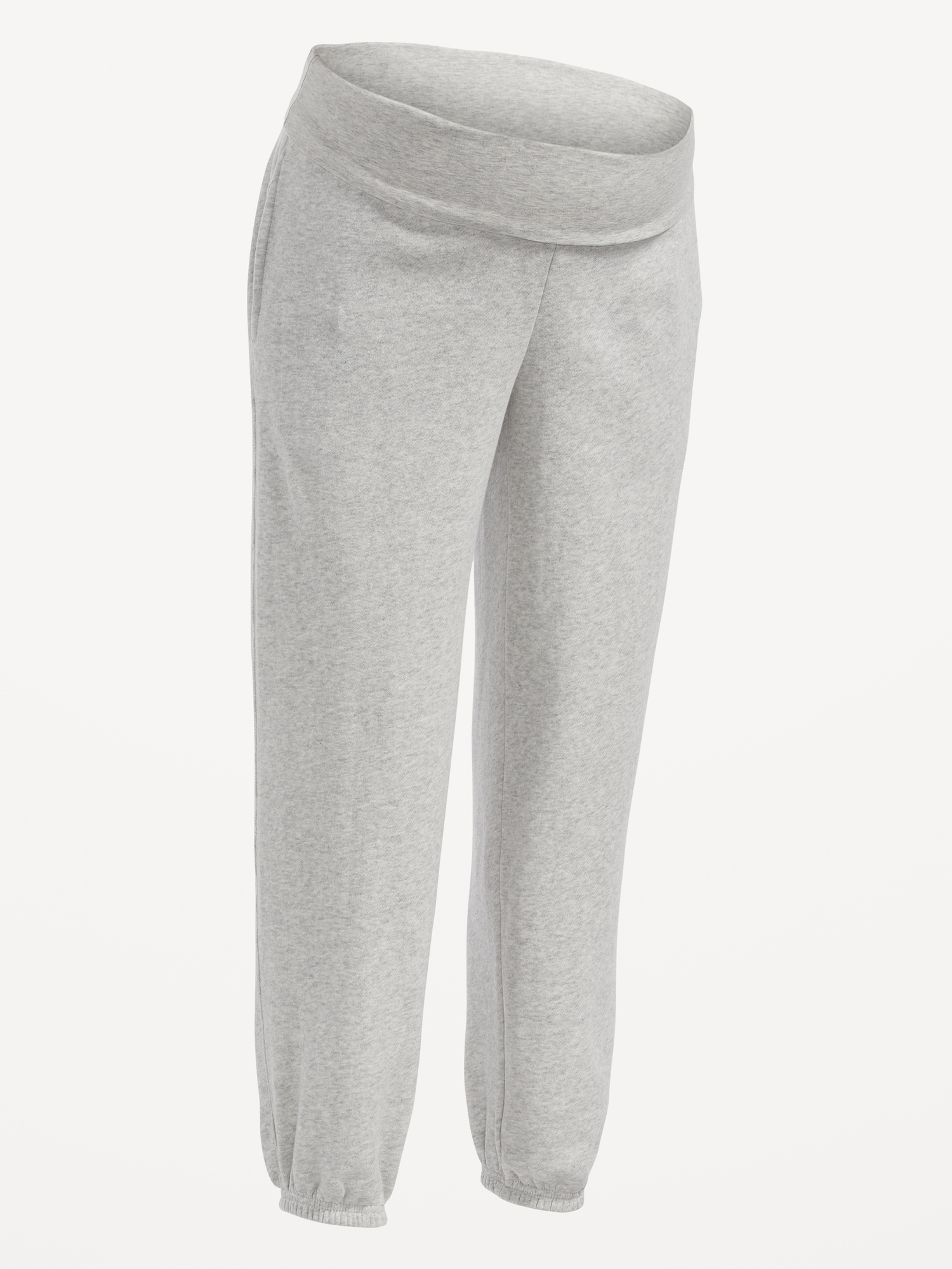 Maternity Rollover-Waist Jogger Sweatpants: rollover waistband, on-seam side pockets, a “watched all 5 seasons today” kind of pant, elasticized leg openings, pull-on style, #612127