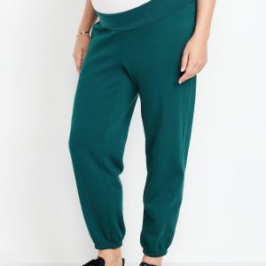 Maternity Rollover-Waist Jogger Sweatpants: rollover waistband, on-seam side pockets, a “watched all 5 seasons today” kind of pant, elasticized leg openings, pull-on style, #612127