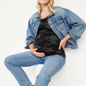 Maternity Scoop-Neck T-Shirt: rib-knit scoop neck, short sleeves, shirred sides, #828328
