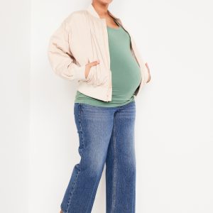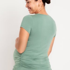 Maternity Scoop-Neck T-Shirt: rib-knit scoop neck, short sleeves, shirred sides, #828328