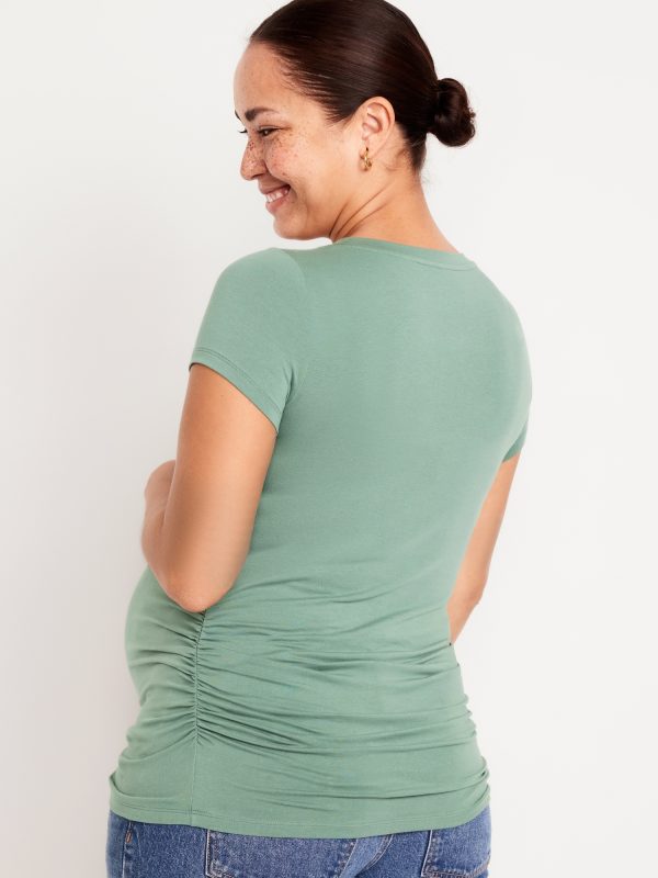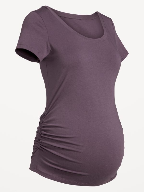 Maternity Scoop-Neck T-Shirt: rib-knit scoop neck, short sleeves, shirred sides, #828328