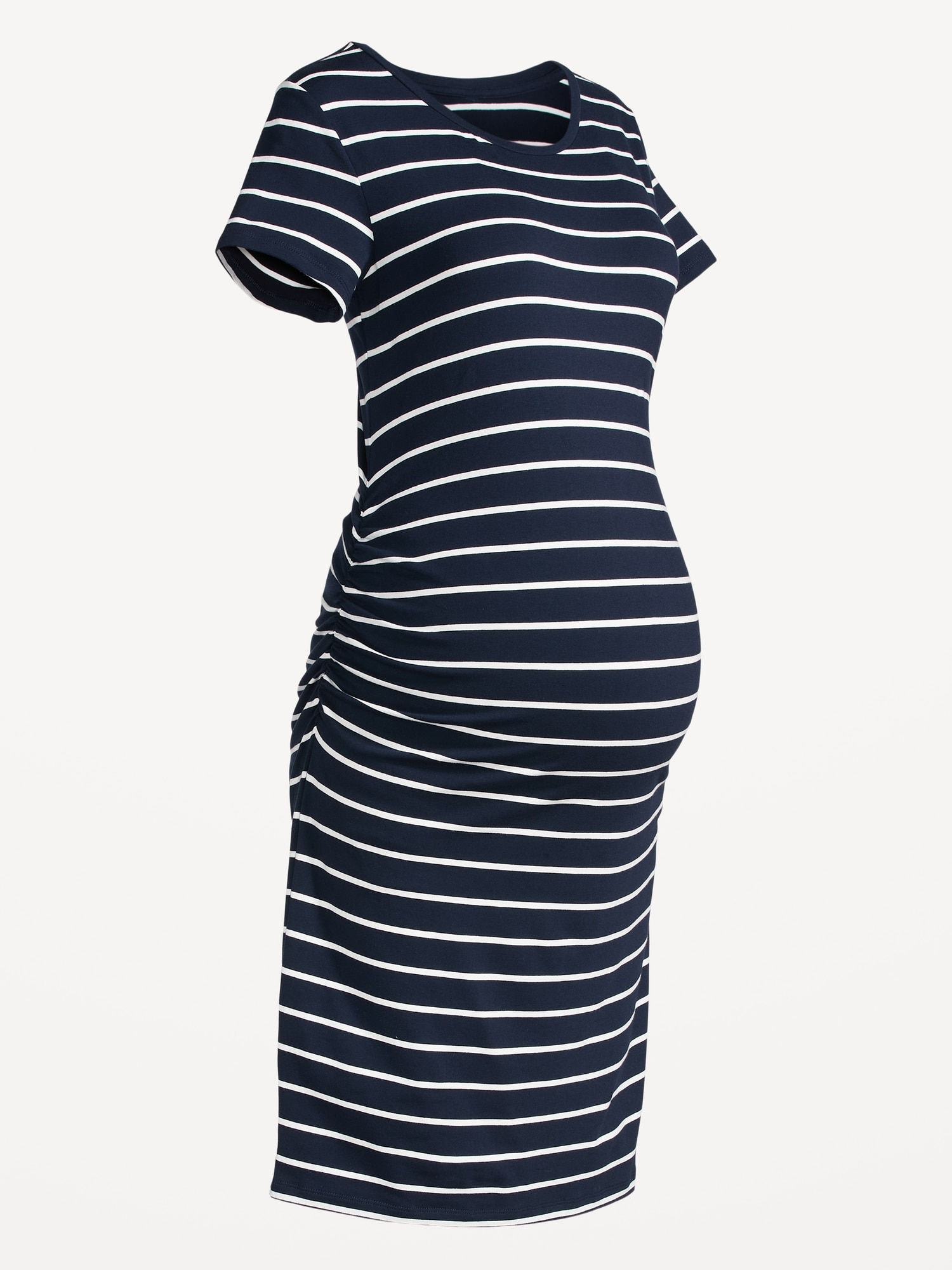 Maternity Short-Sleeve Bodycon Dress: perfect for a baby shower, crew neck, short sleeves, shirred sides for a flexible fit, #871936