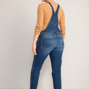 Maternity Side-Panel OG Straight Jean Overalls: Meet our OG Straight Jean. Part ‘90s nostalgia, part new-normal comfort.adjustable shoulder straps attach to metal buttons at front, patch pocket at bib yoke, built-in belt loops at waist, elastic panels at hips, faux fly, diagonal on-seam hip pockets, patch pockets at back, #842309