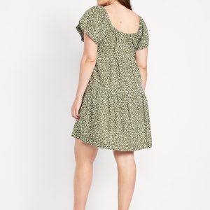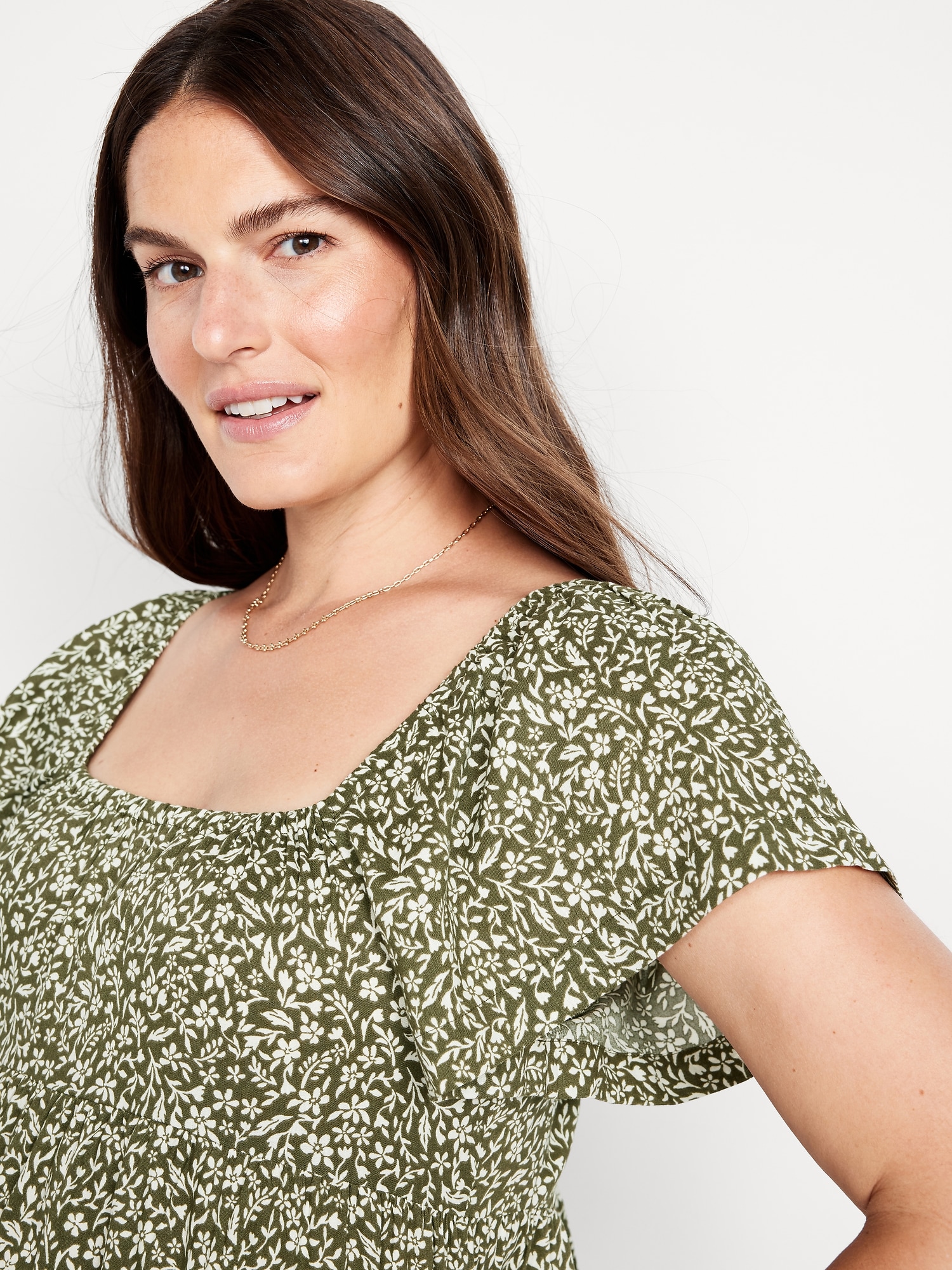 Maternity Square-Neck Crinkle Gauze Mini Dress: square neck, short flutter sleeves, tiered shirred seams, all-over floral print, #826484