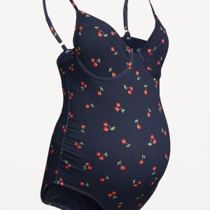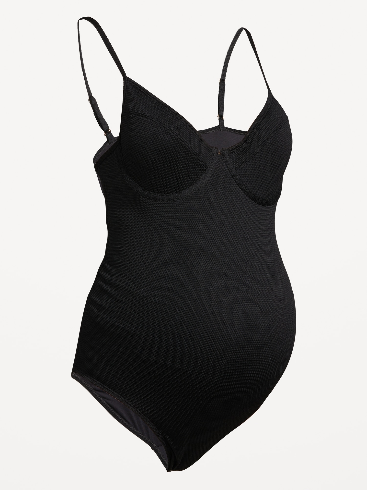 Maternity Textured One-Piece Balconette Swimsuit: adjustable spaghetti straps, underwire support, removable pads, elastic leg openings, #719528