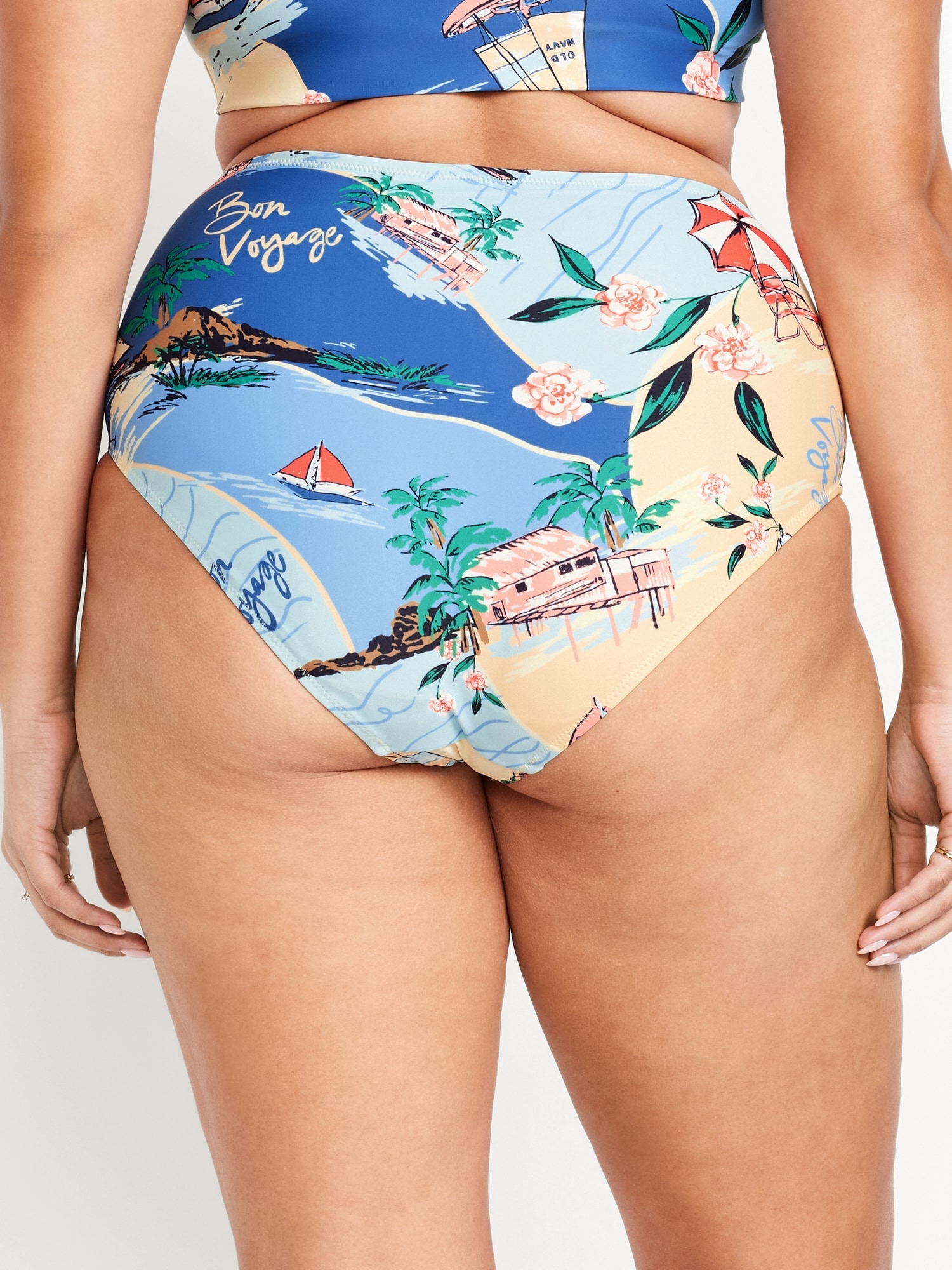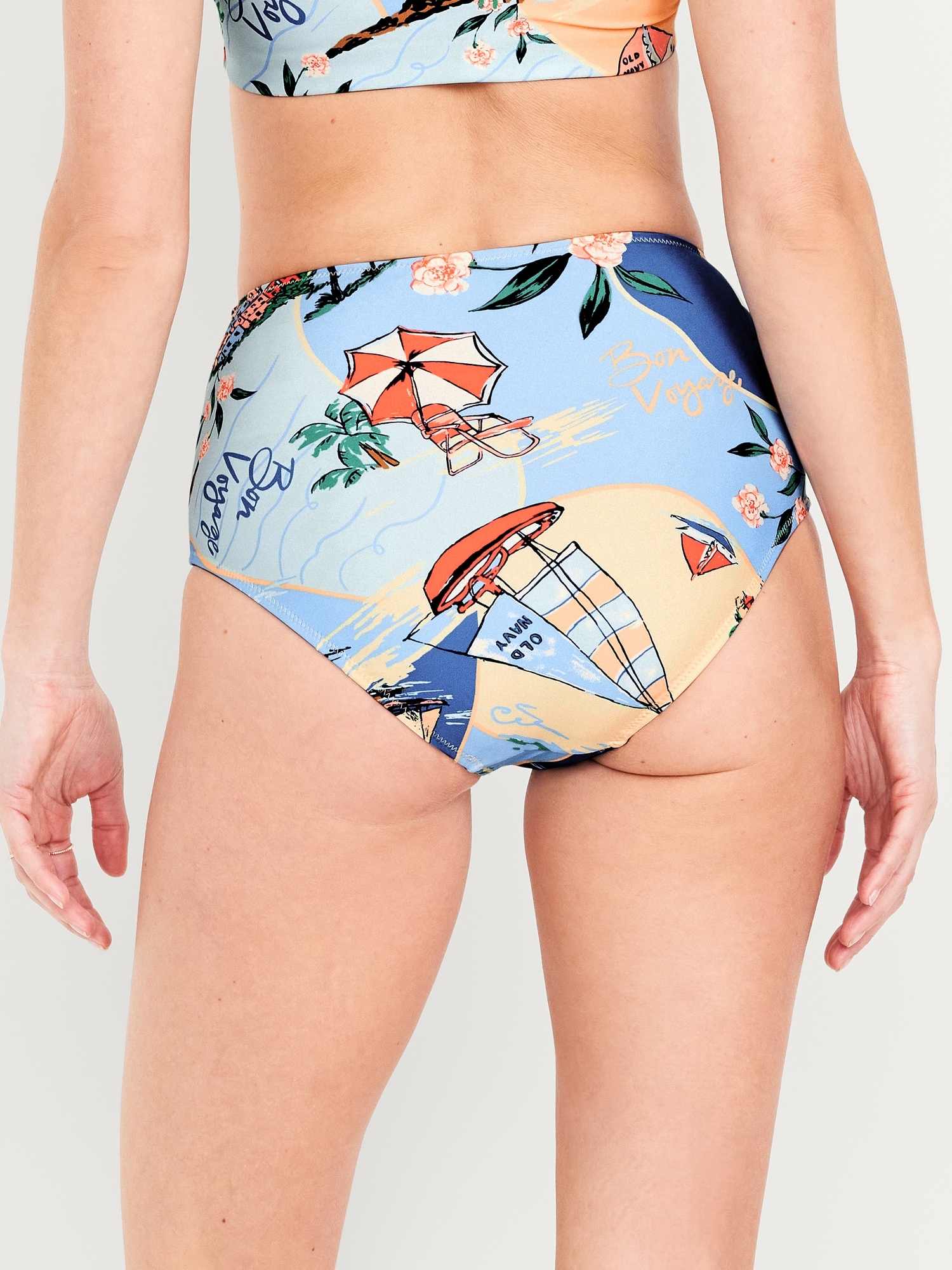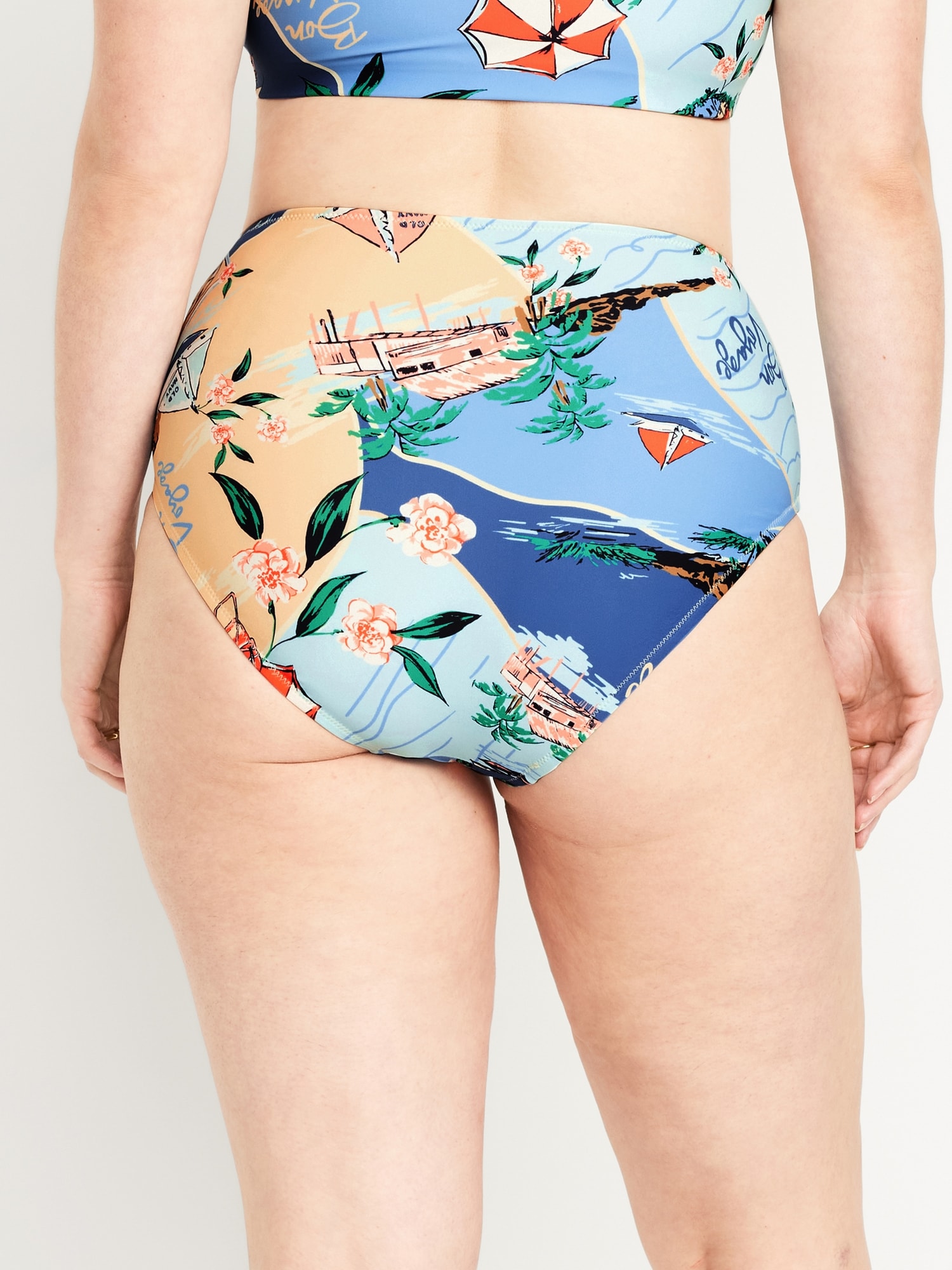 Matte High-Waisted Bikini Swim Bottoms: elasticized waist, elasticized leg openings, prints vary, #660456
