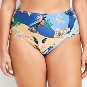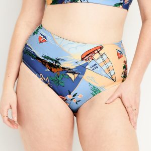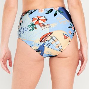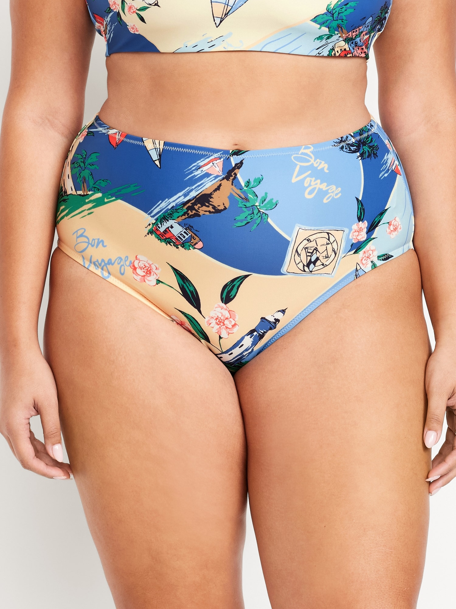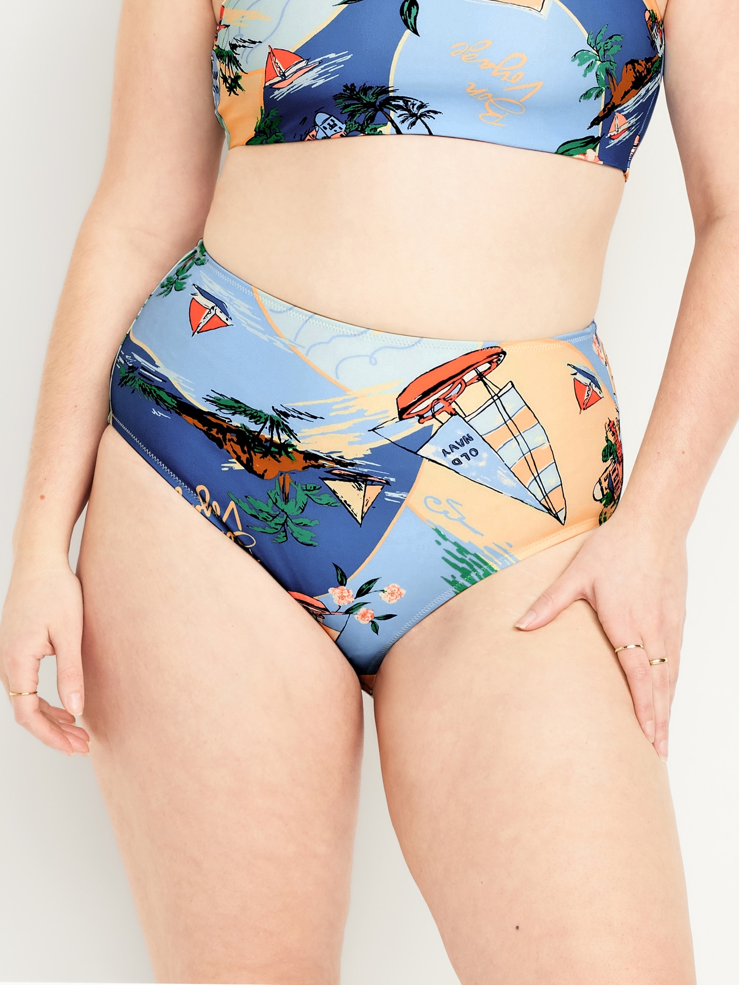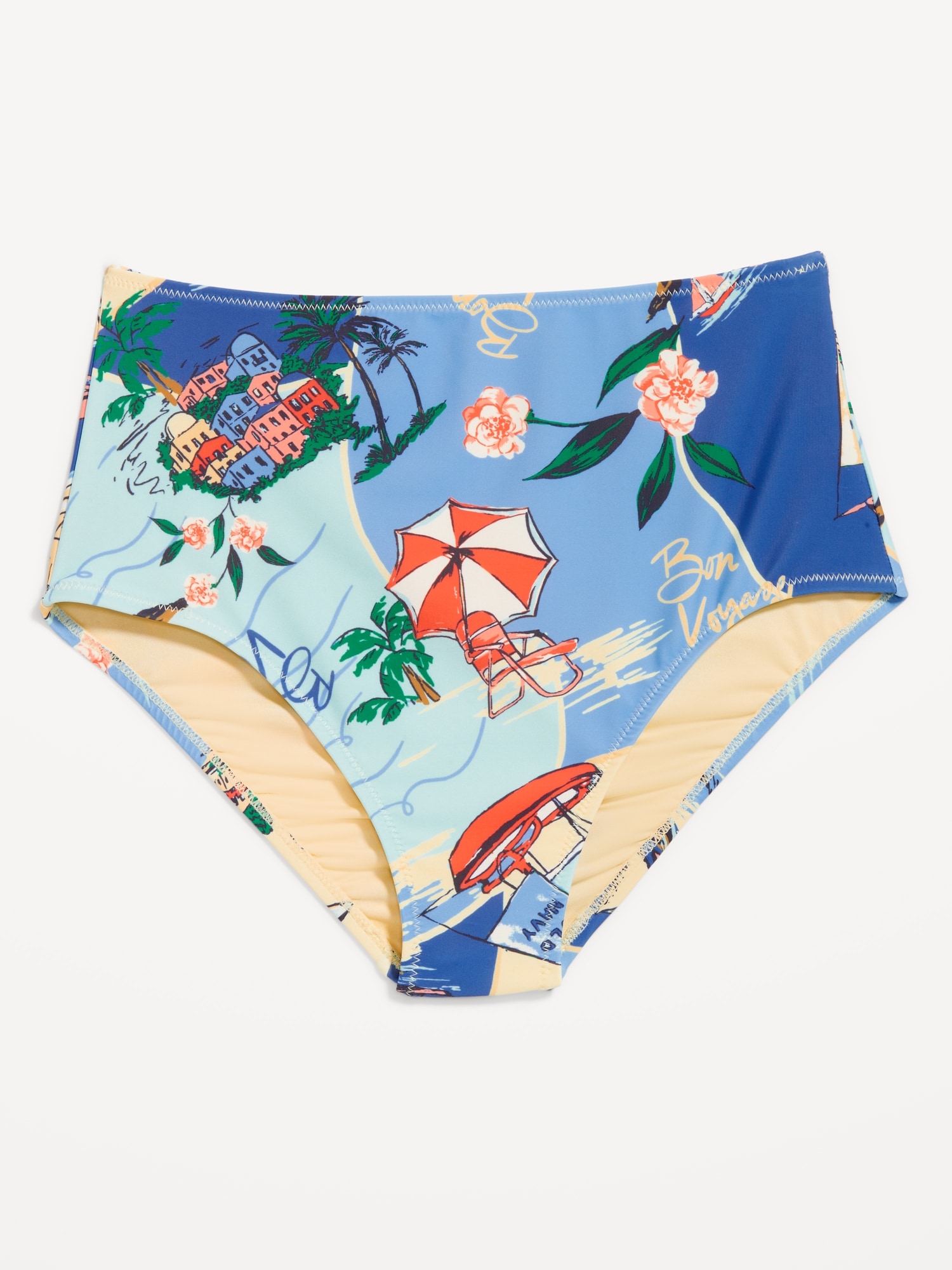 Matte High-Waisted Bikini Swim Bottoms: elasticized waist, elasticized leg openings, prints vary, #660456