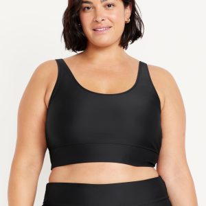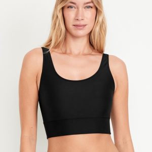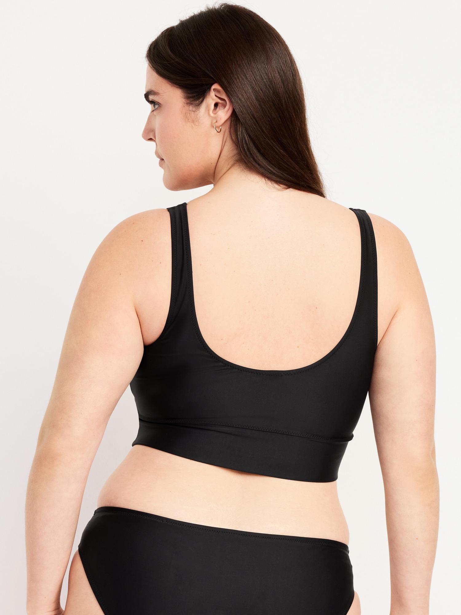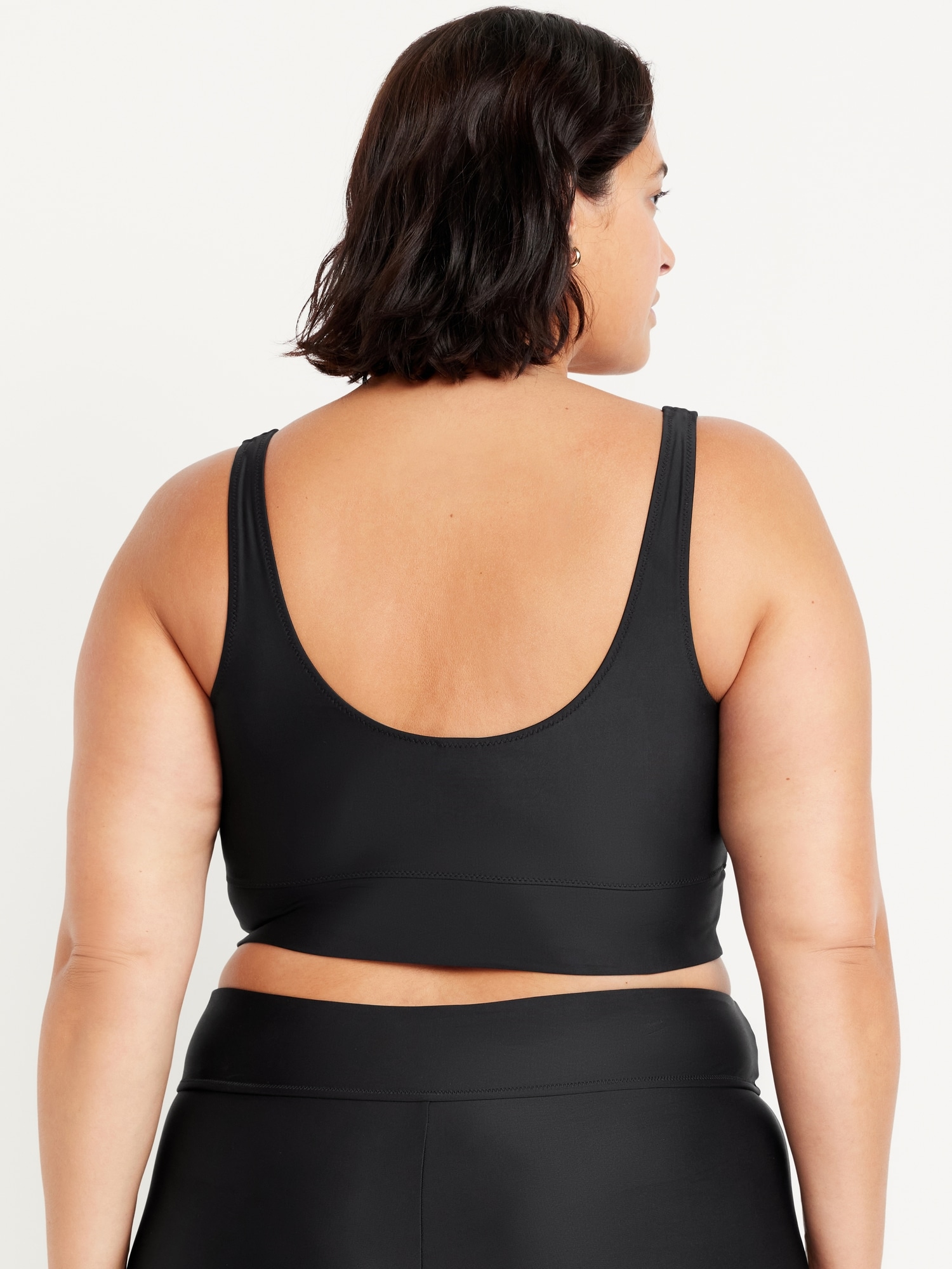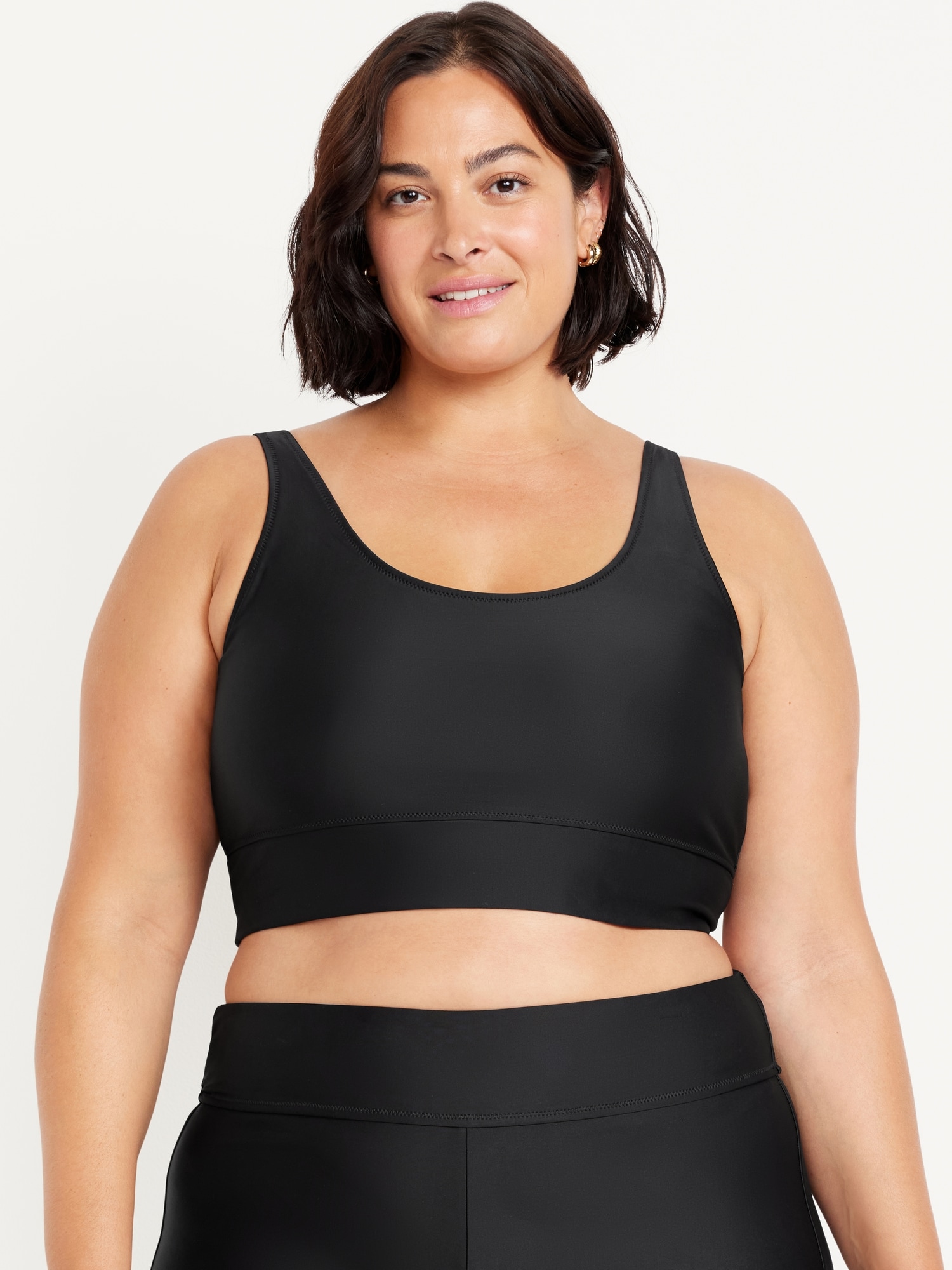 Matte Longline Swim Top: scoop neck, wide straps, removable pads, #604384