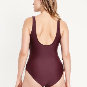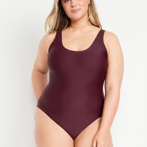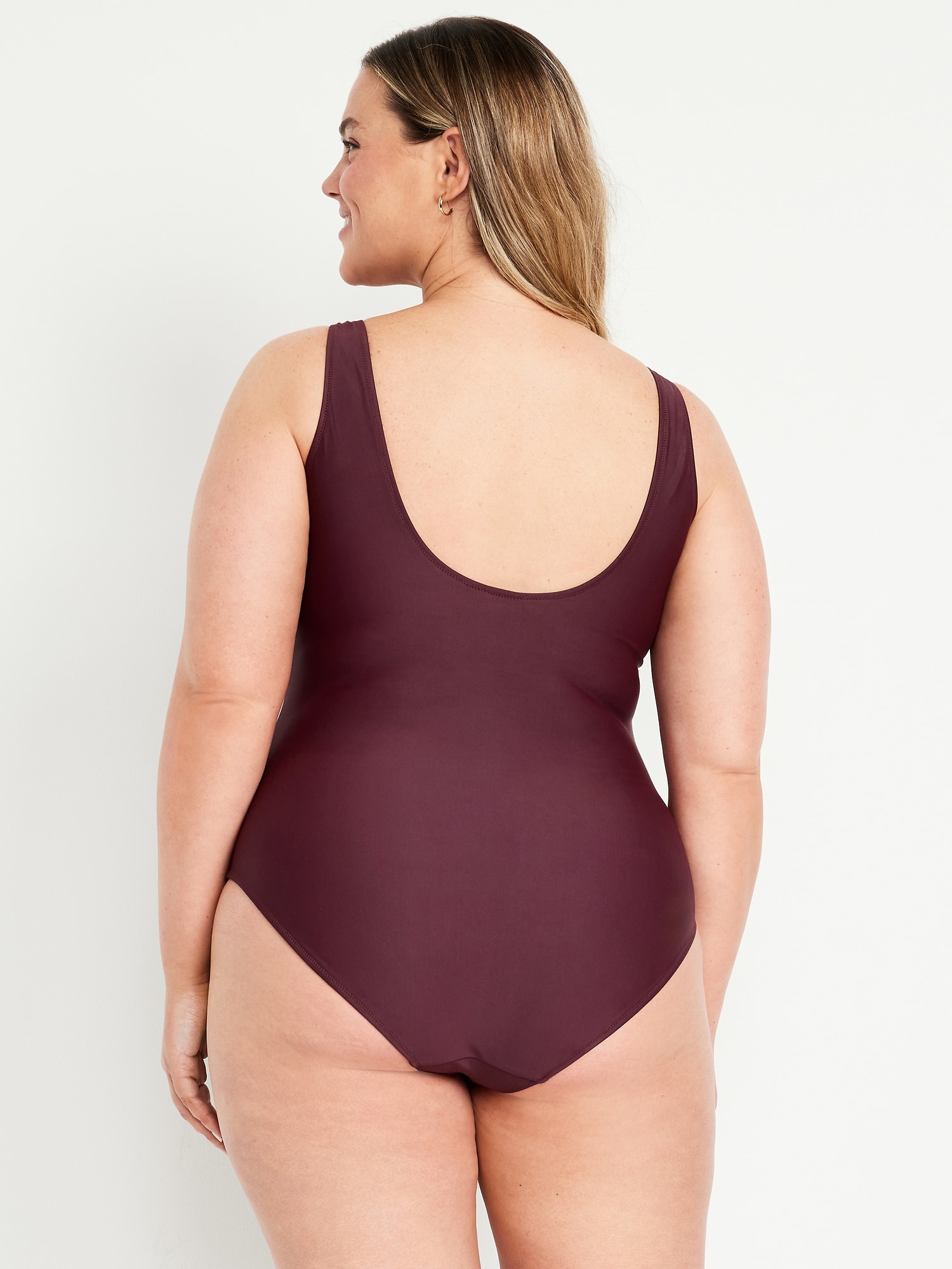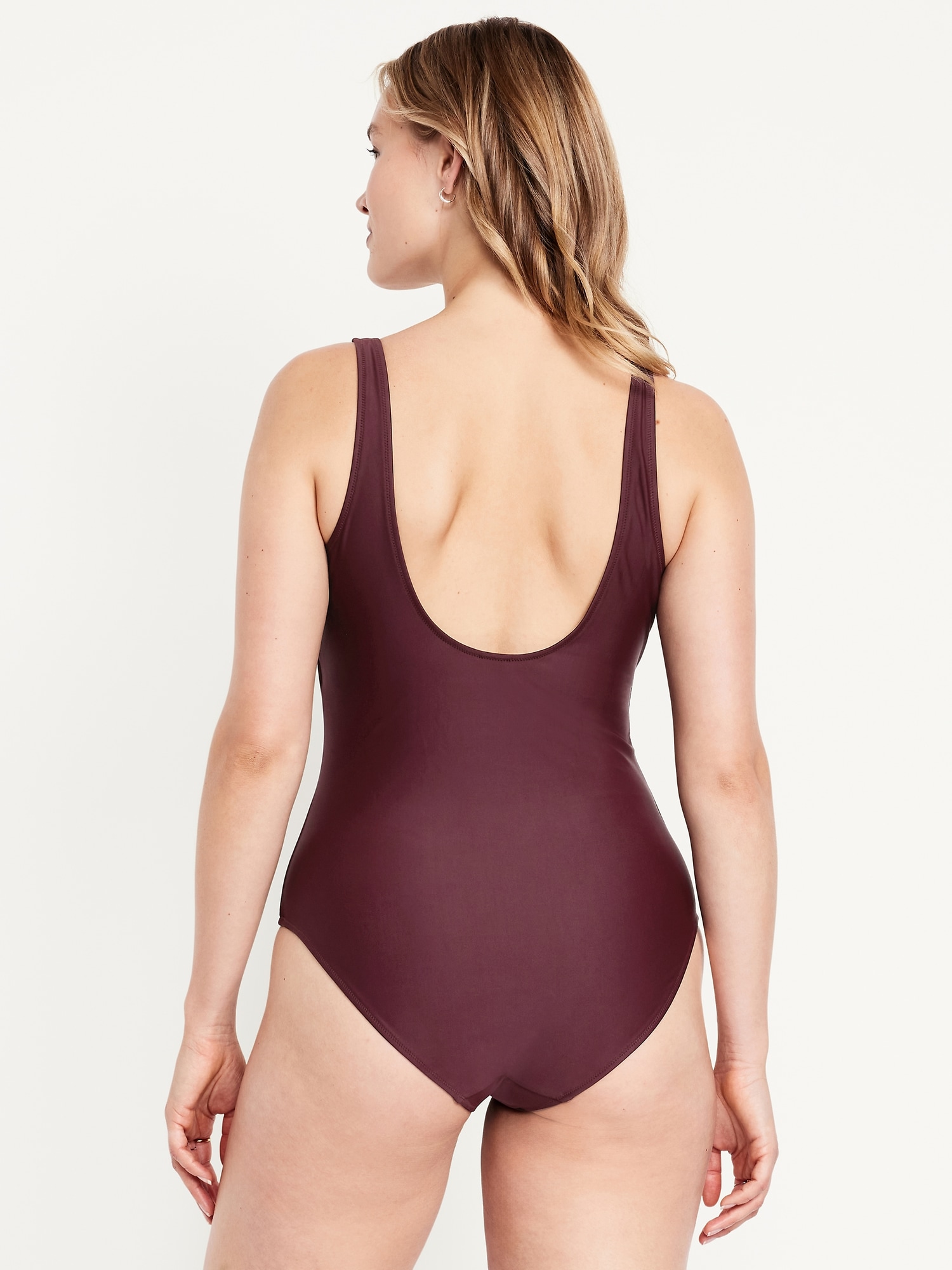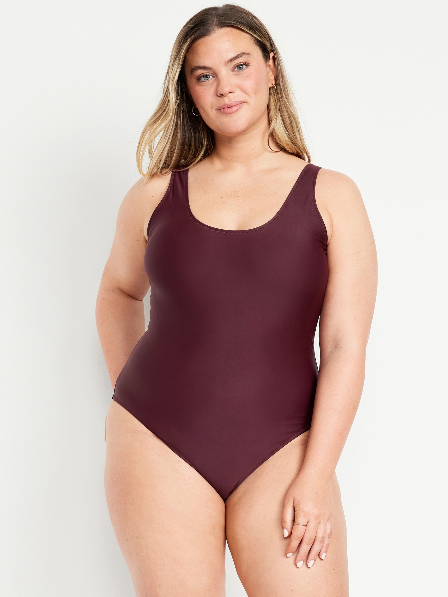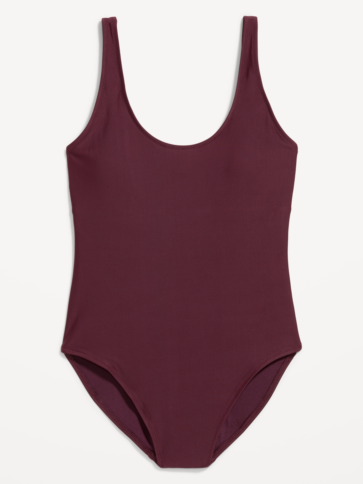Matte One-Piece Swimsuit: scoop neck, wide straps, low scoop back, removable pads, elastic leg openings, #604387