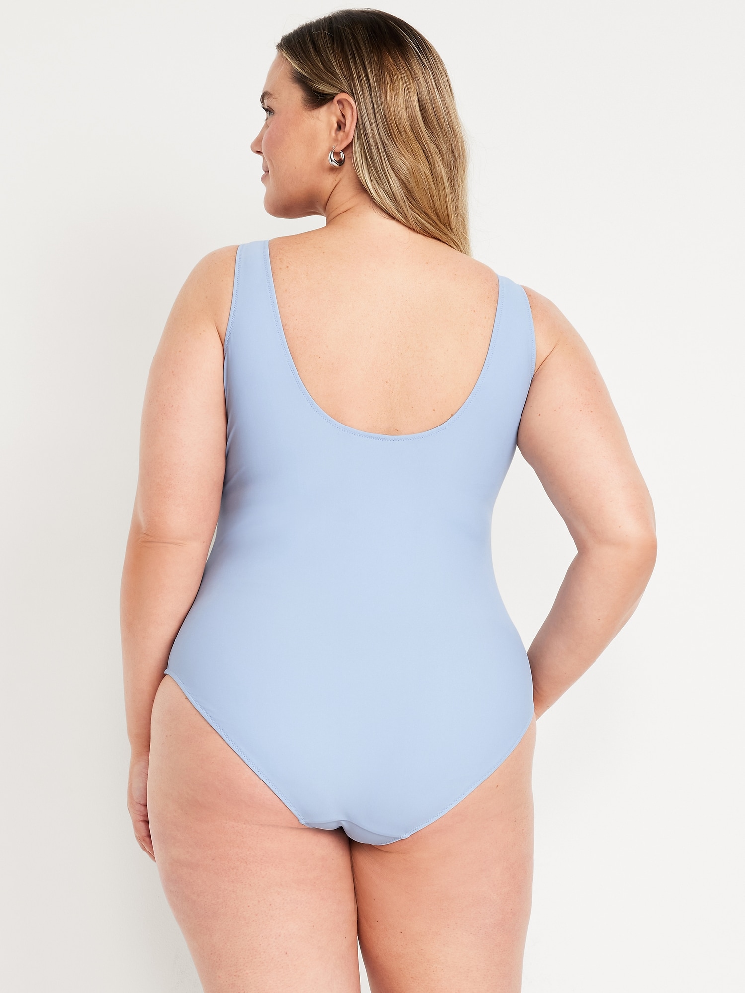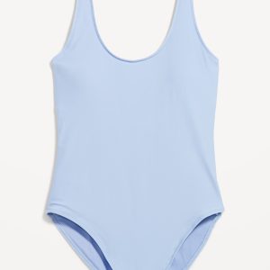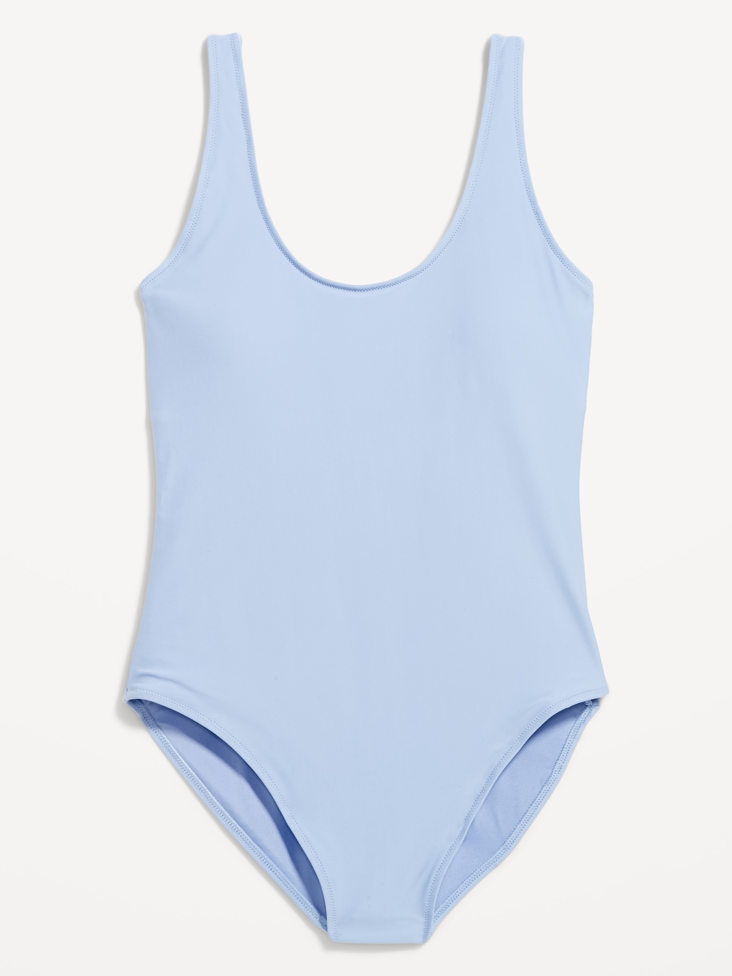 Matte One-Piece Swimsuit: scoop neck, wide straps, low scoop back, removable pads, elastic leg openings, #604387