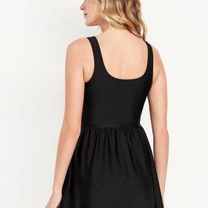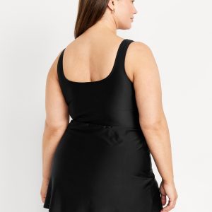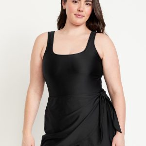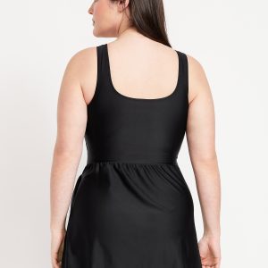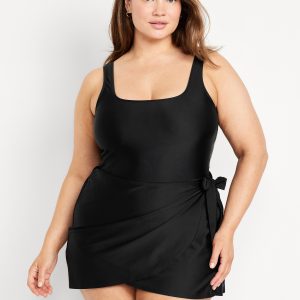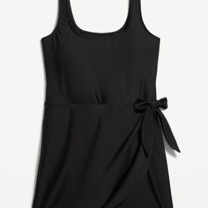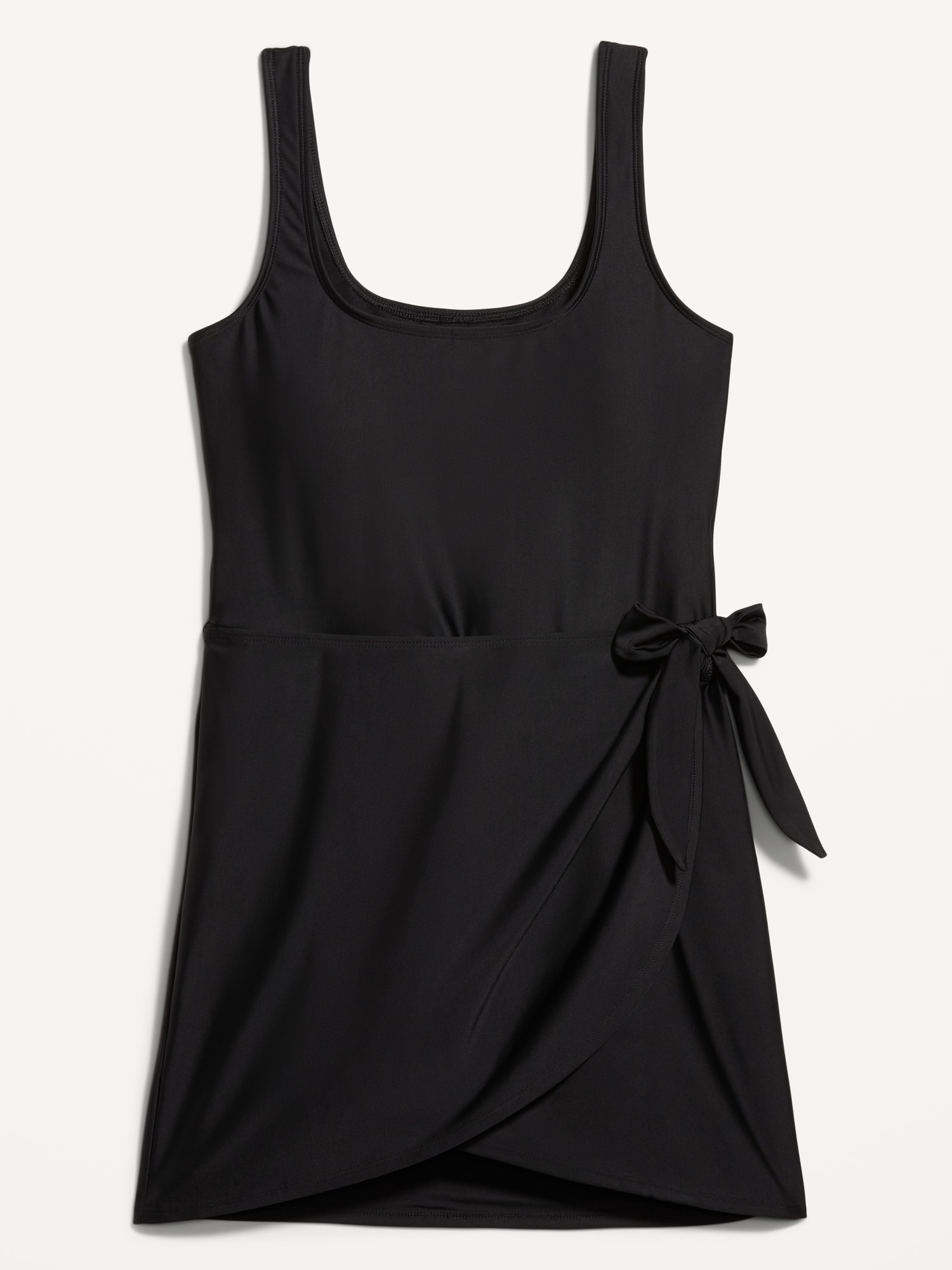 Matte Side-Tie Swim Dress: square neck, wide shoulder straps, removable pads, built-in briefs, #854710