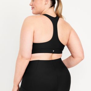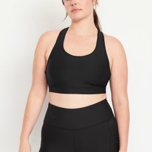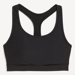 Medium Support PowerSoft Racerback Sports Bra: Featuring PowerSoft. Light compression meets a peachy-smooth, sweat-wicking fabric.stabilizing straps, racerback, front mesh lining with shaped cups, removable pads, banded-elastic hem, go-dry wicks moisture, #569574