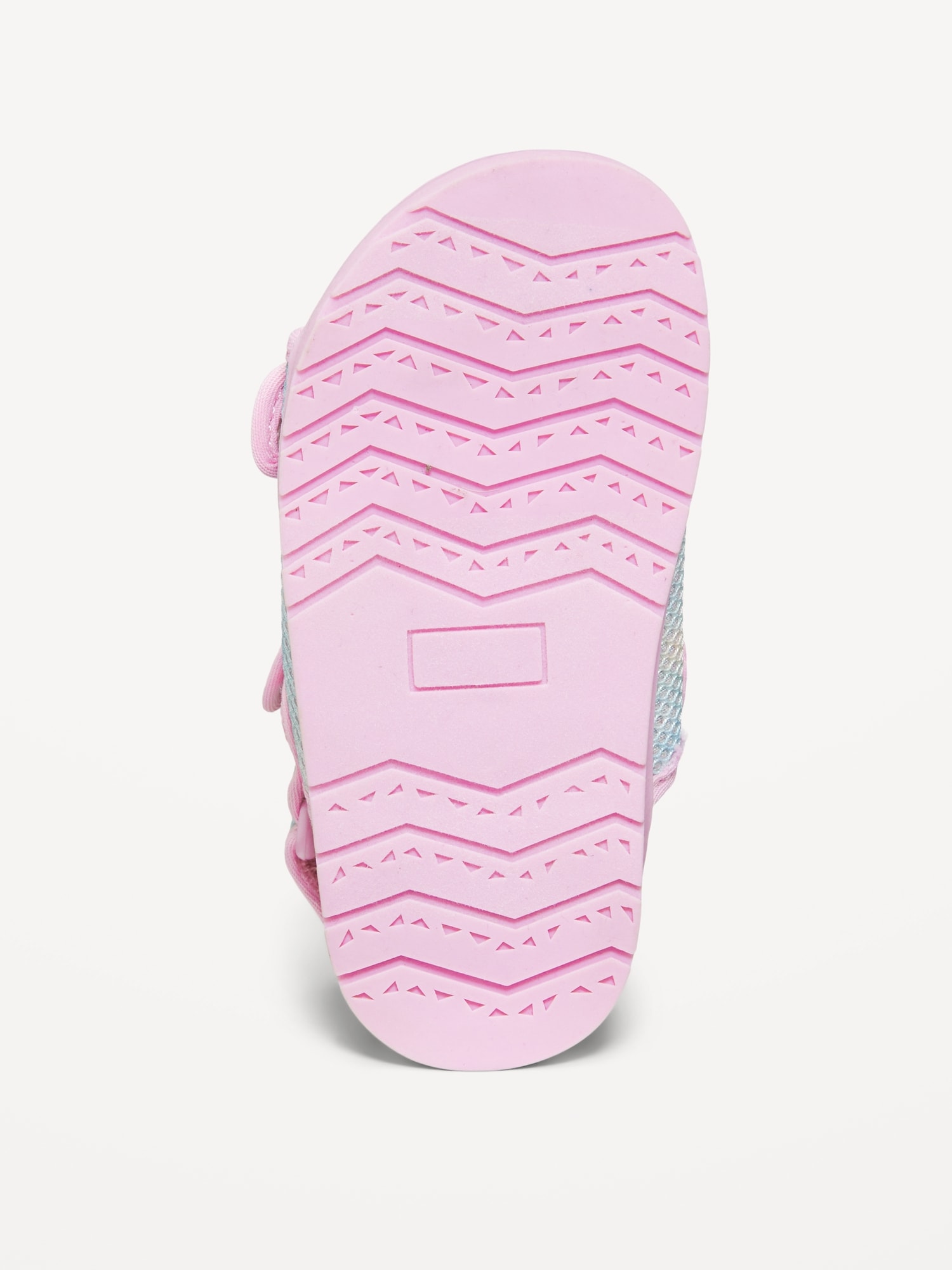 Mesh Double-Strap Sandals for Toddler Girls: double buckled straps across foot, adhesive secure-close ankle strap, cushioned foot bed, textured outsole, #762302