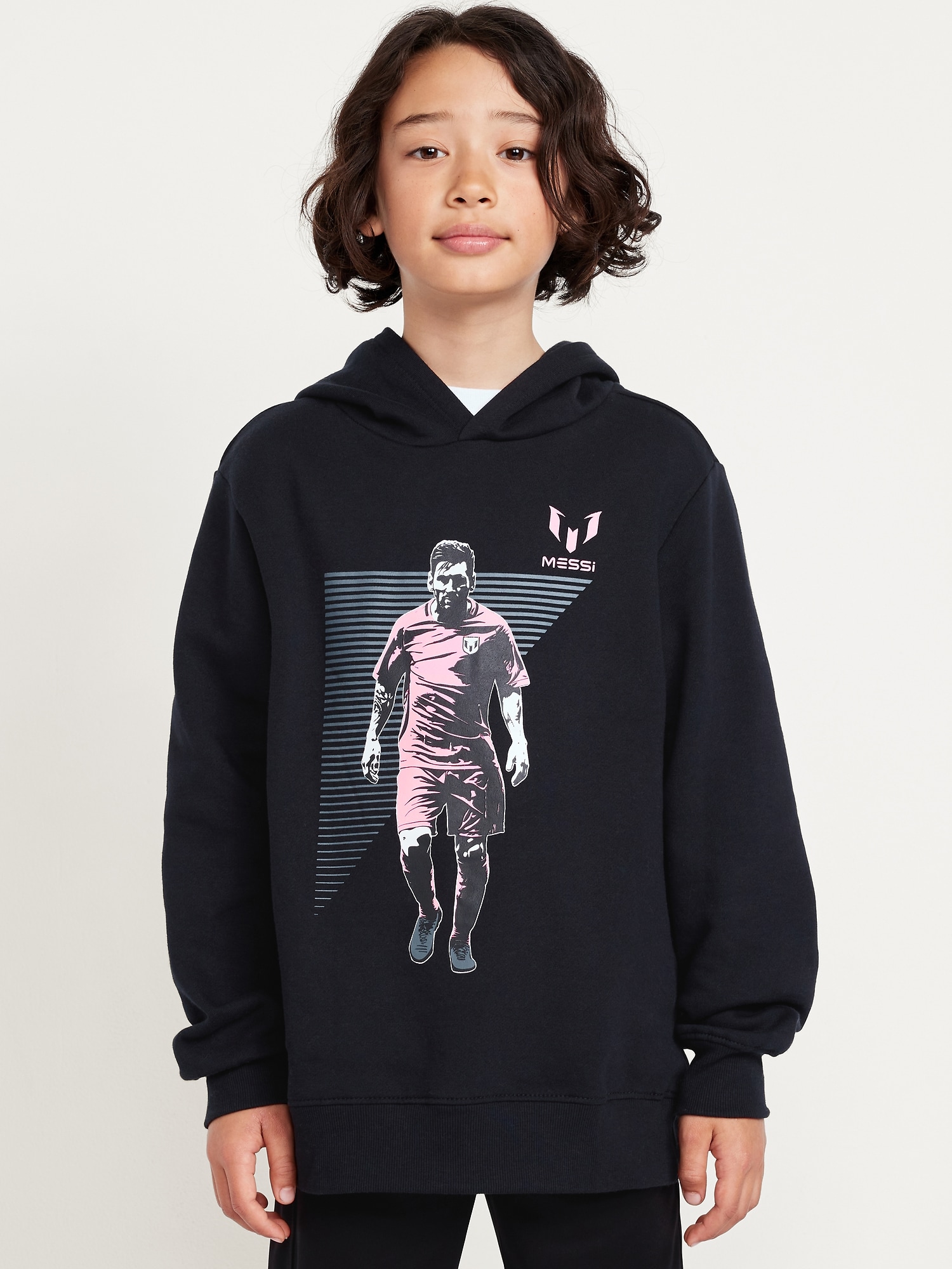 Messi⢠Graphic Pullover Hoodie for Boys: built-in hood, long sleeves, drop shoulders, licensed graphic at front, kangaroo pocket, banded hem, © Leo Messi Management. Used under license., #833852