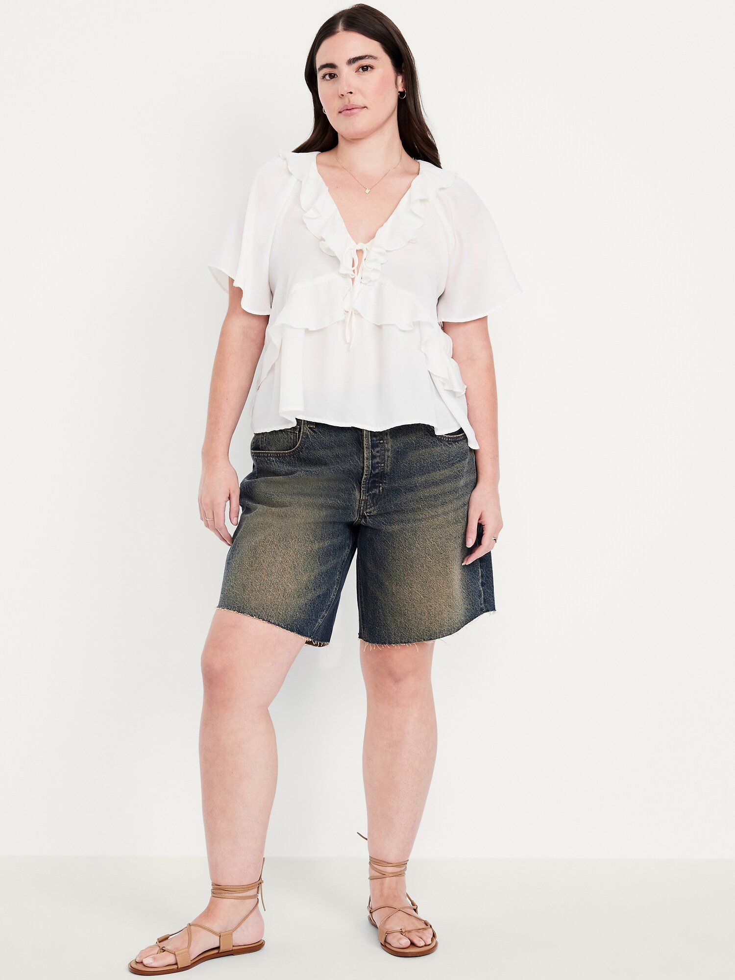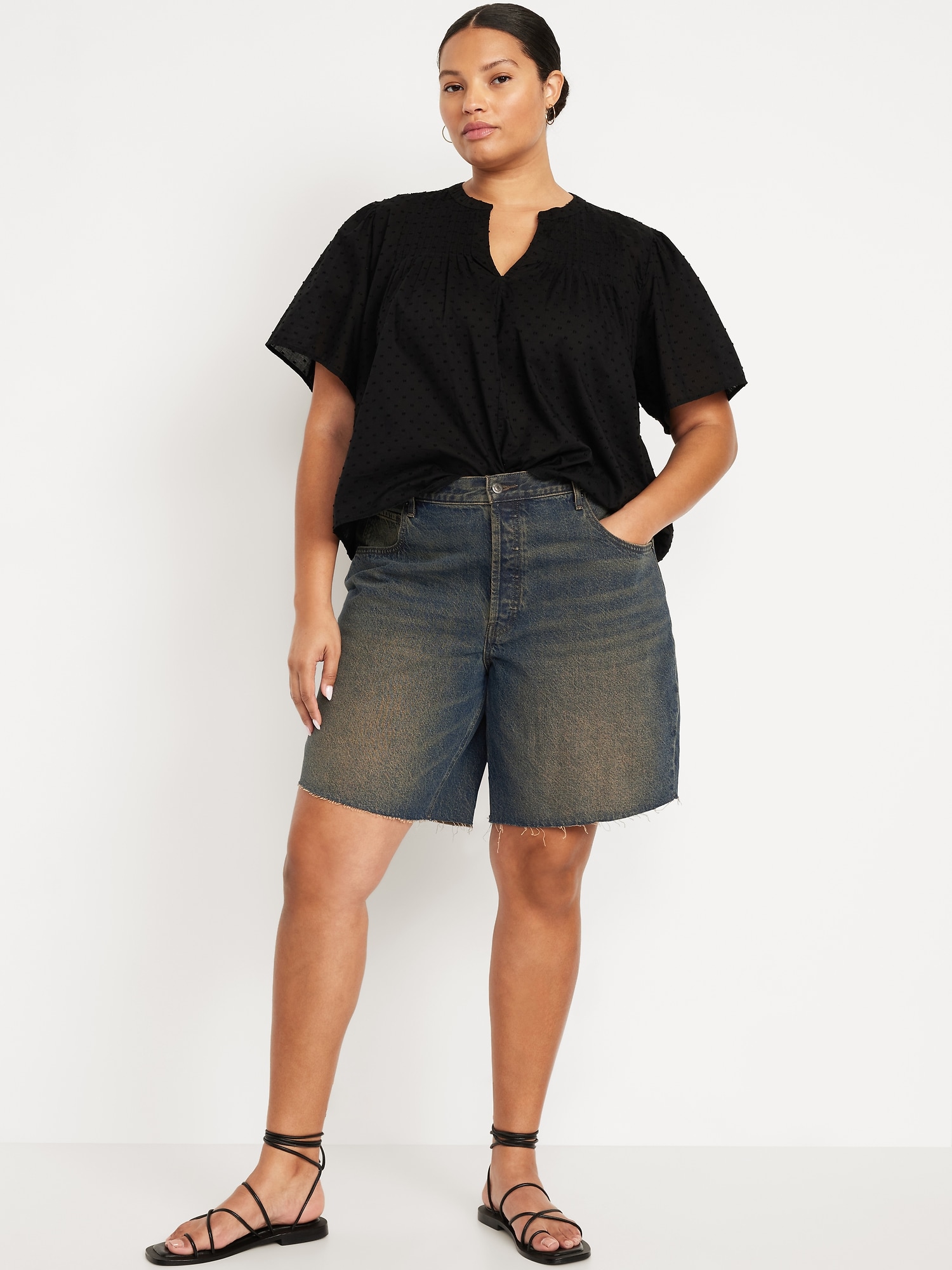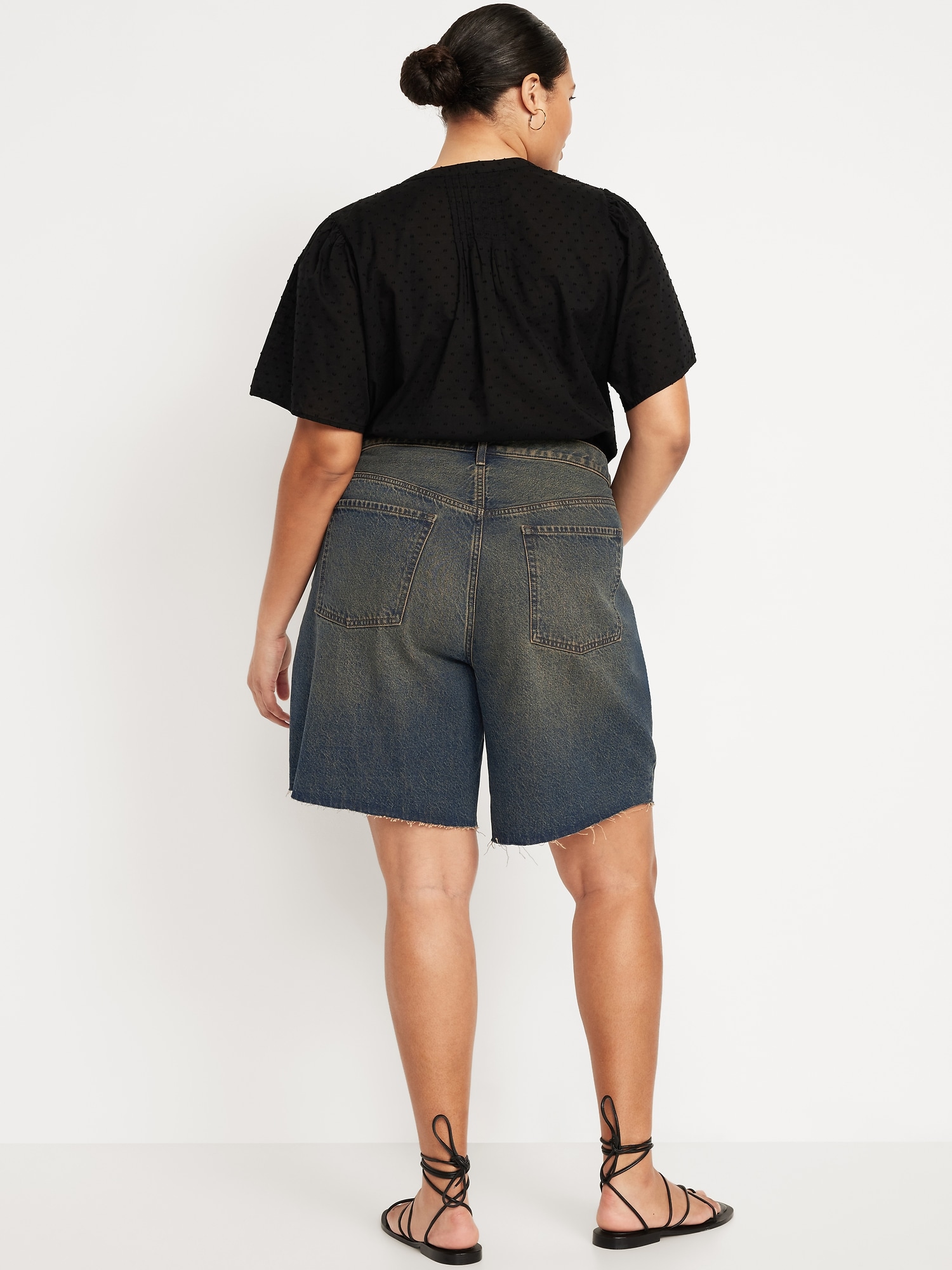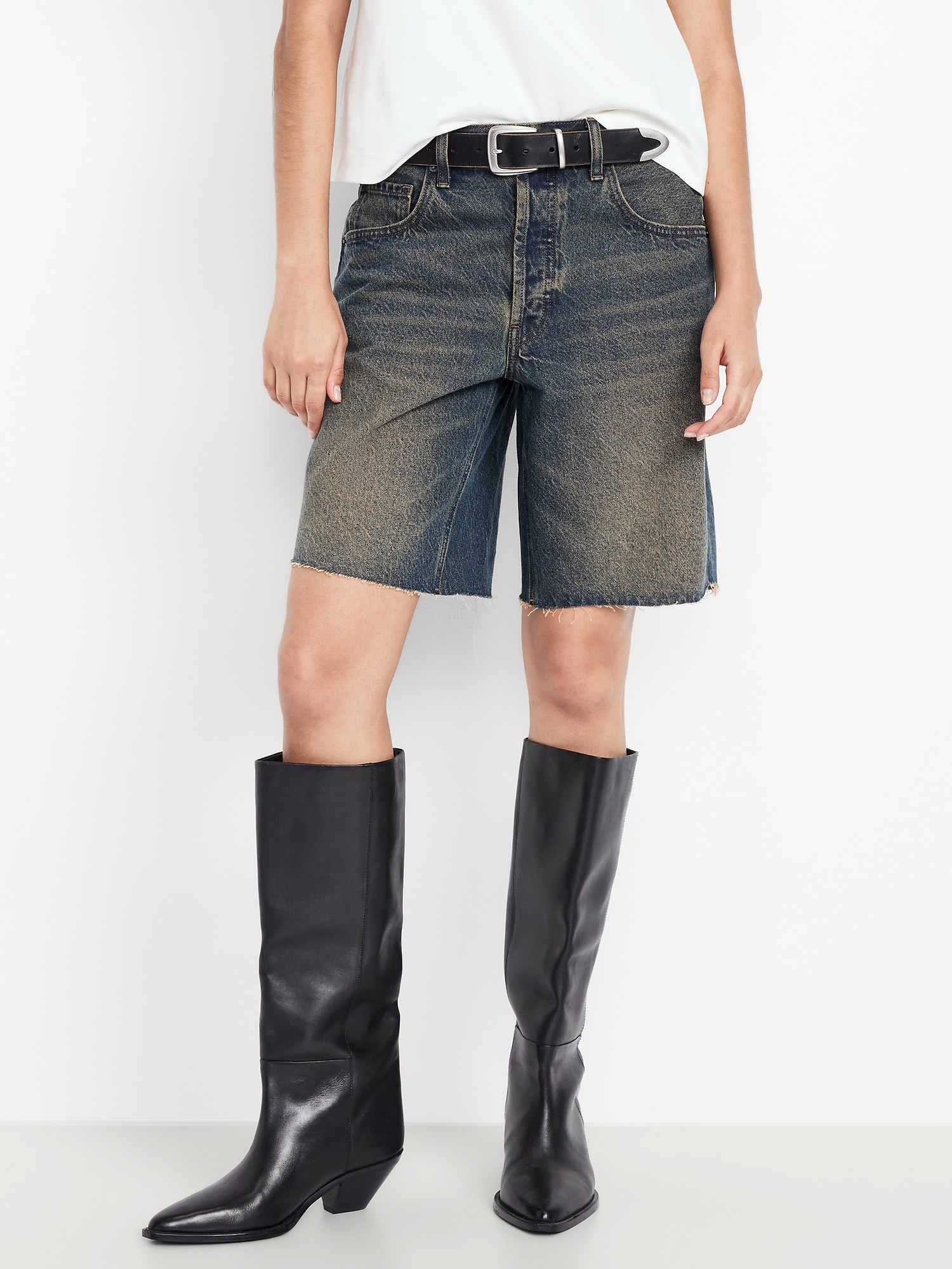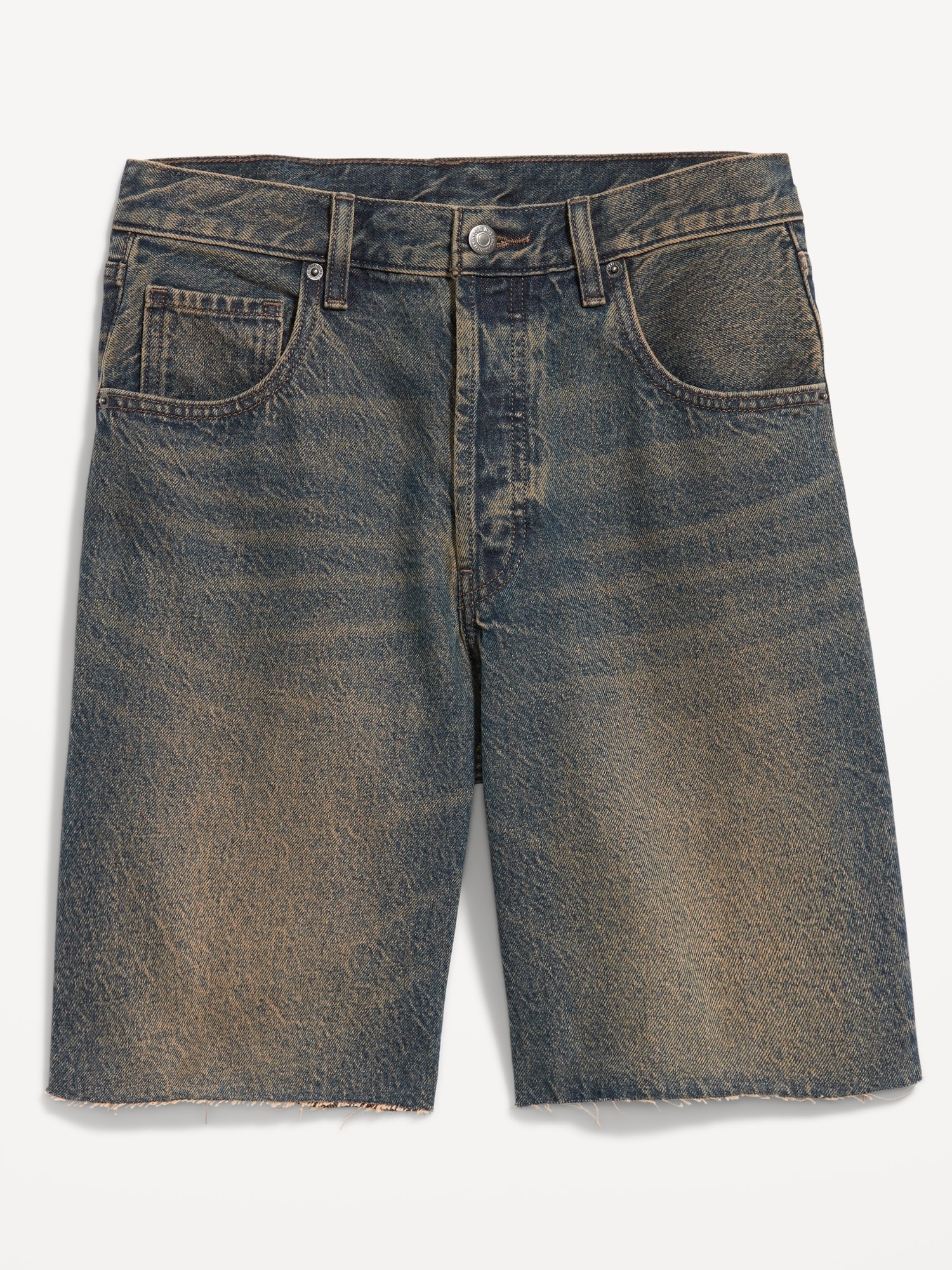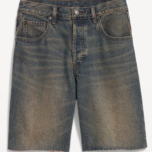 Mid-Rise Baggy Cut-Off Jean Bermuda Shorts — 9-inch inseam: mid-rise waist, hidden button fly, #844573
