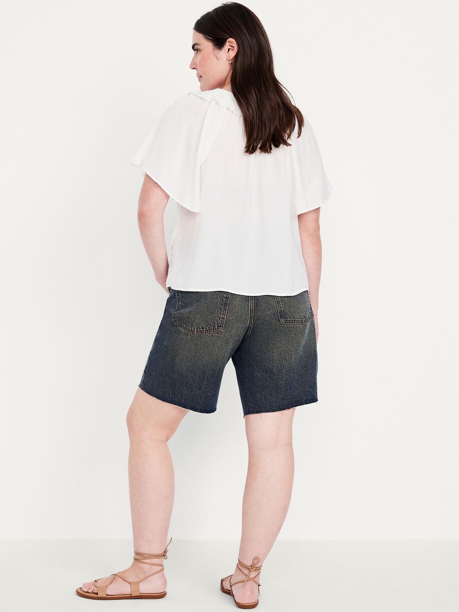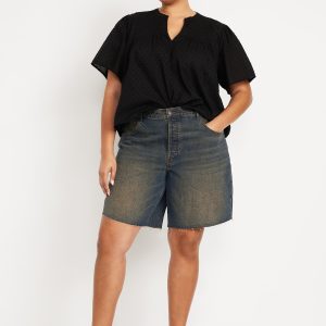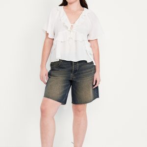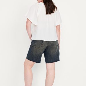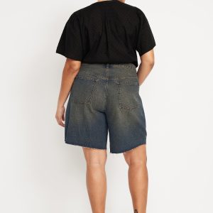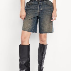 Mid-Rise Baggy Cut-Off Jean Bermuda Shorts — 9-inch inseam
