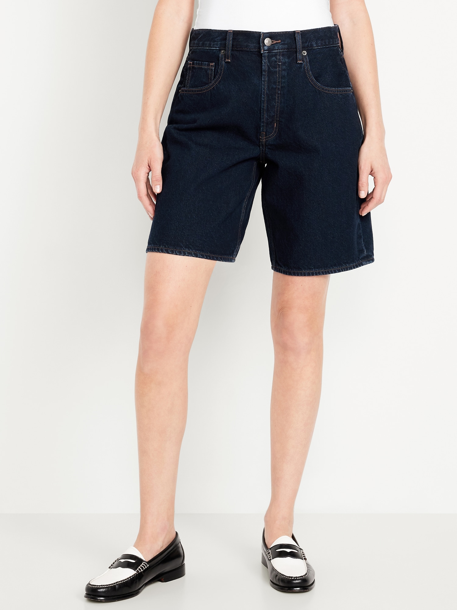 Mid-Rise Baggy Jean Bermuda Shorts — 9-inch inseam